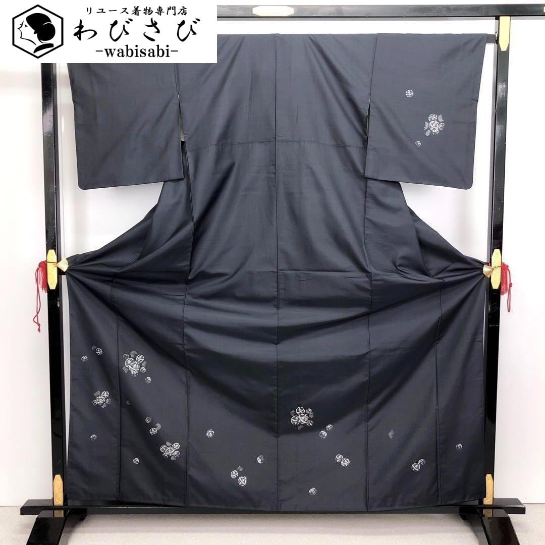 付下げ 染大島紬 手毬柄 藍墨茶色 K-3221 着物 きもの kimono 和服 和装 中古 リサイクル着物 【送料無料】