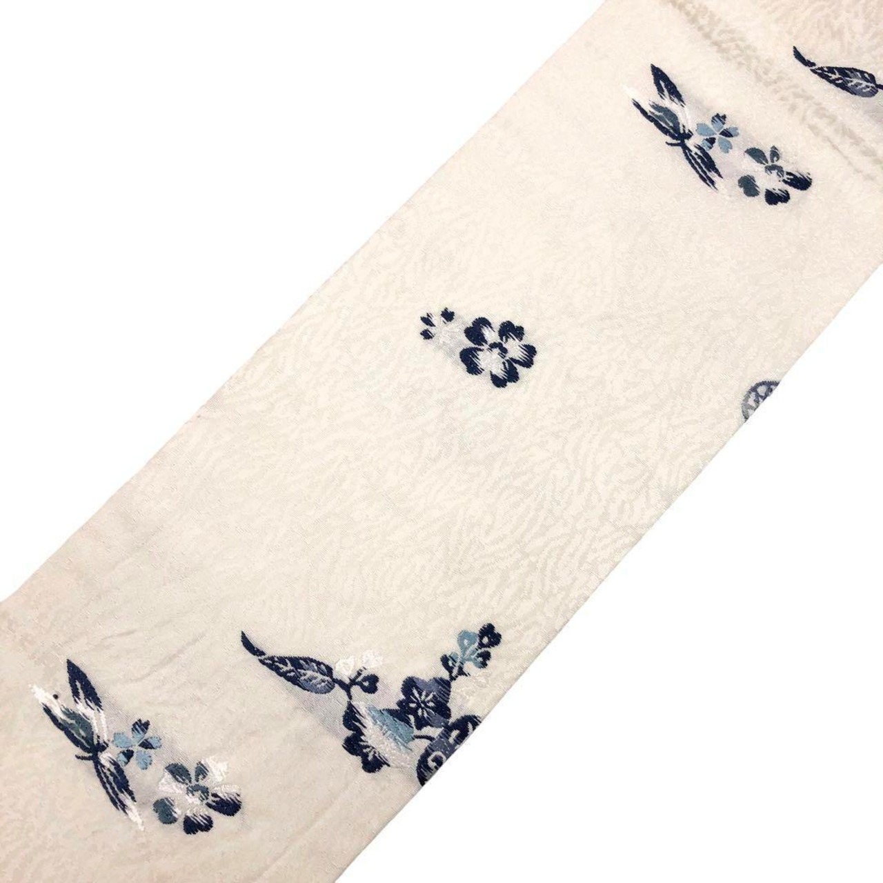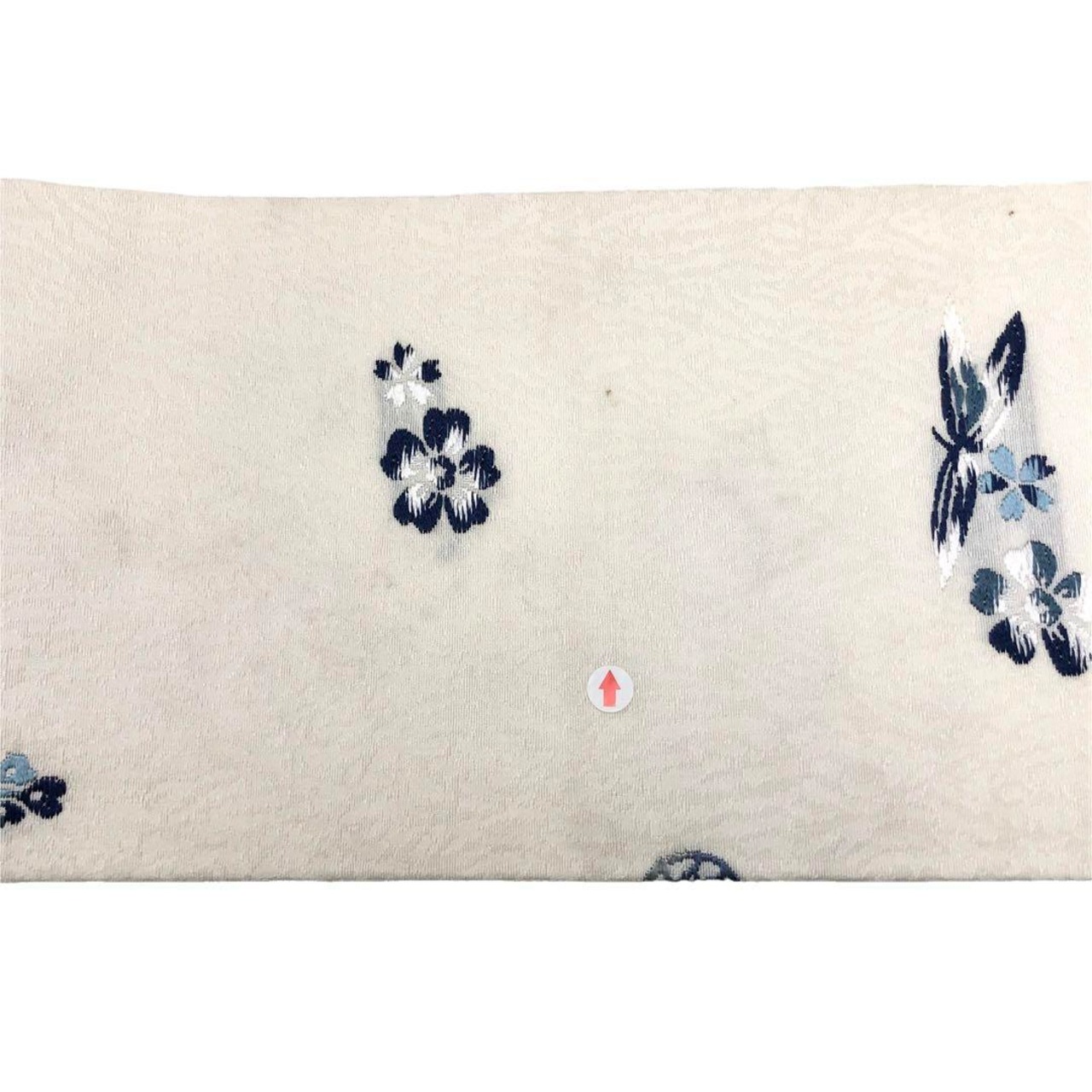 名古屋帯 藍色の飛び柄花模様 乳白色 地模様 O-3119