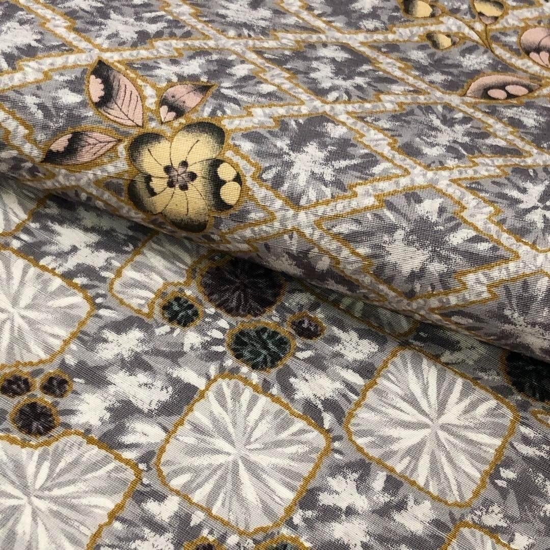 海緑色ベースに美しい辻が花の柄裄、反対はくすみカラーベースの格子柄に辻が花や様々な模様がデザインされた素敵なお品でございます。