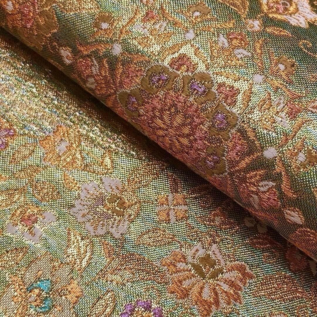 金色ベースの煌びやかなお色味、彩更紗と題された美しい華柄模様がデザインされた素敵なお品でございます。