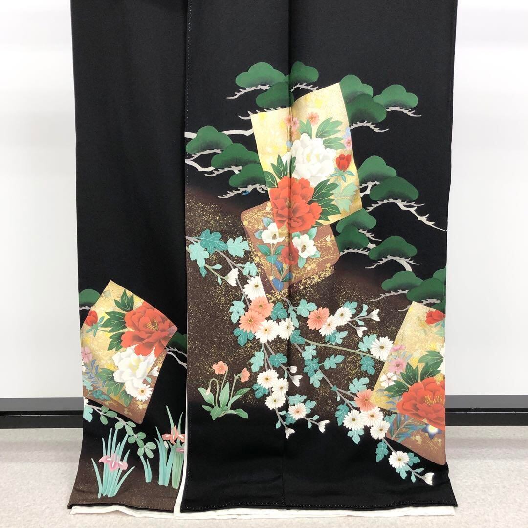 黒留袖 作家物 色紙に四季の花模様 松 金彩 トールサイズ K-3272