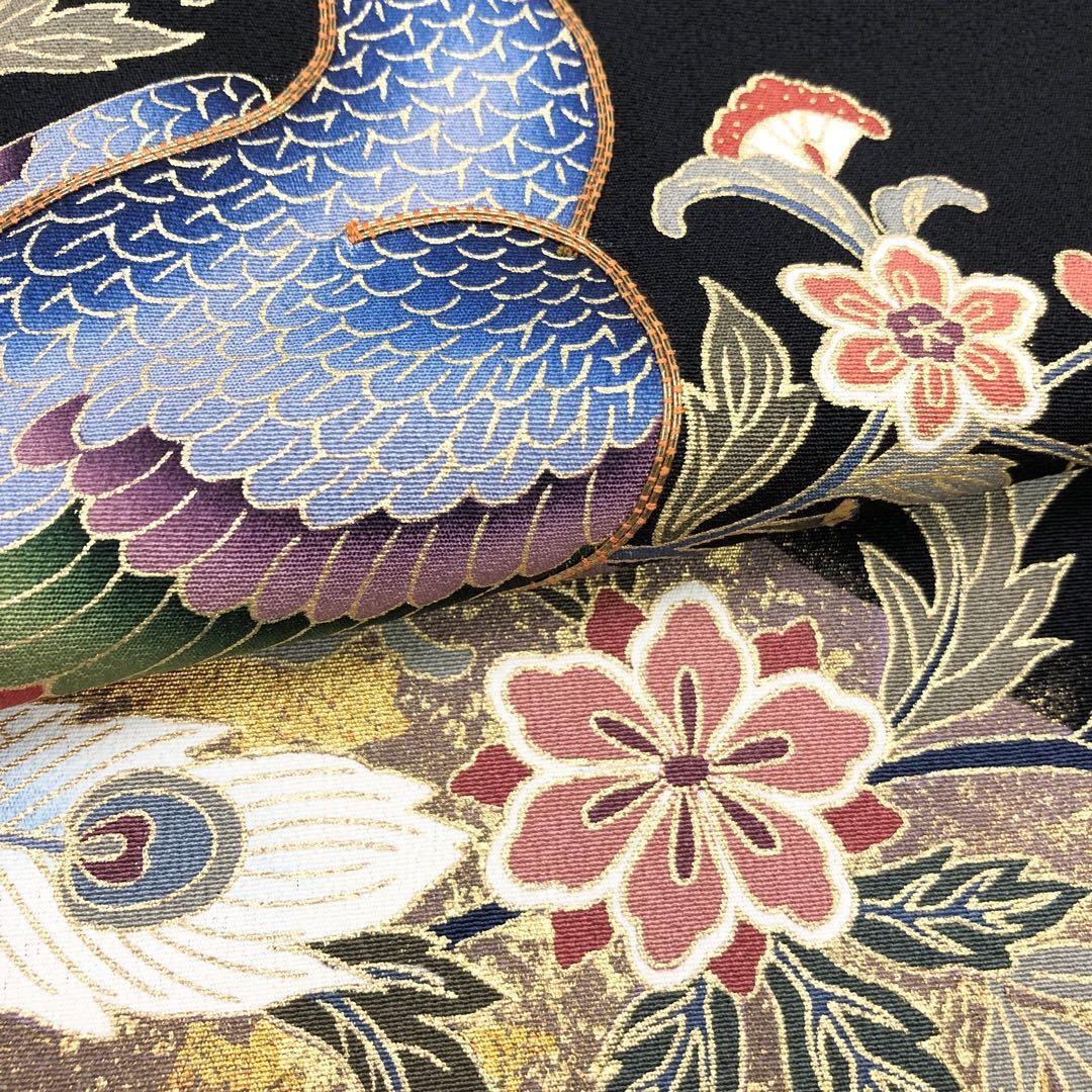 黒留袖 作家物 美しい孔雀に花柄 金駒刺繍 しつけ糸 トールサイズ K-3266