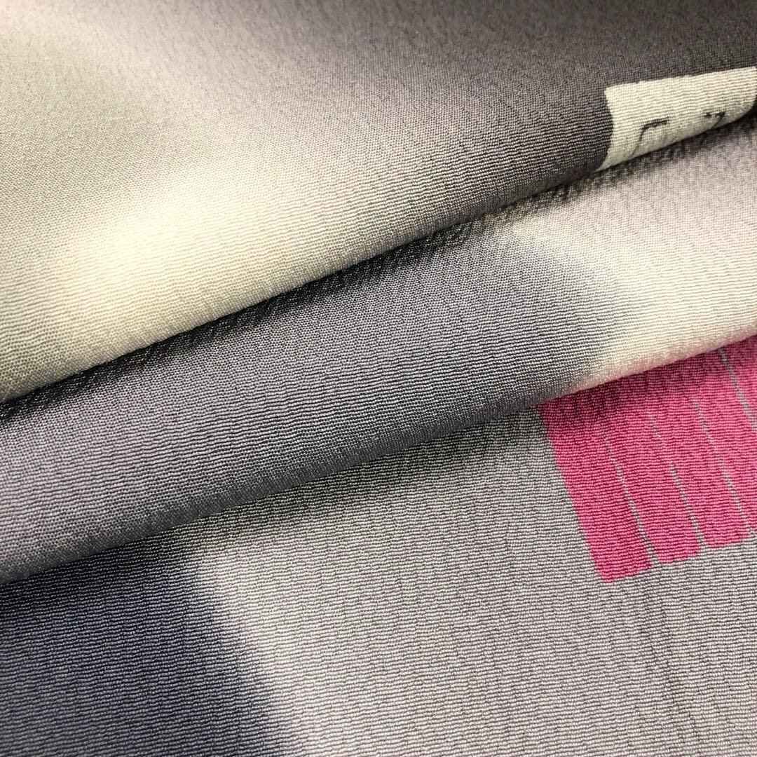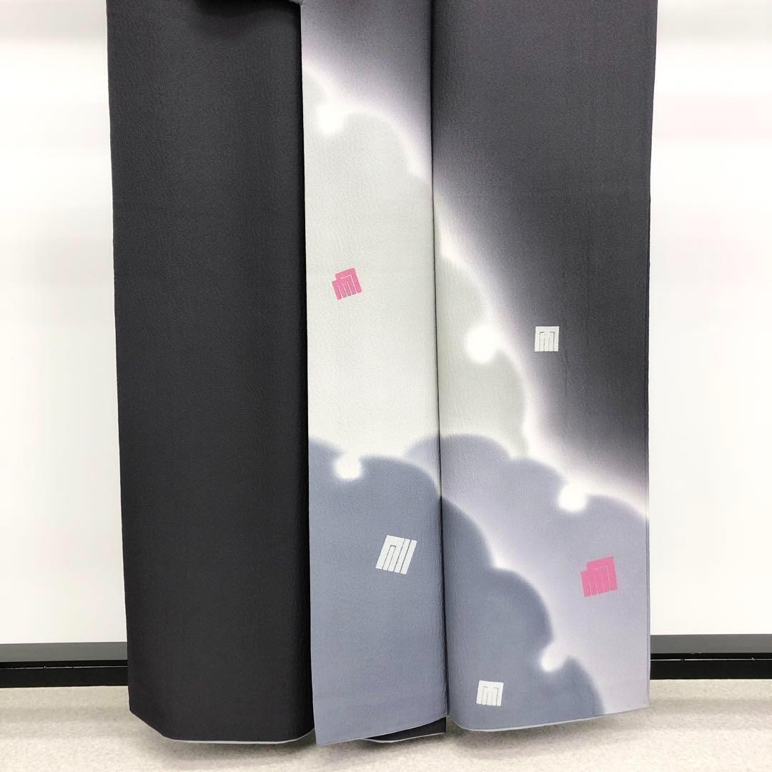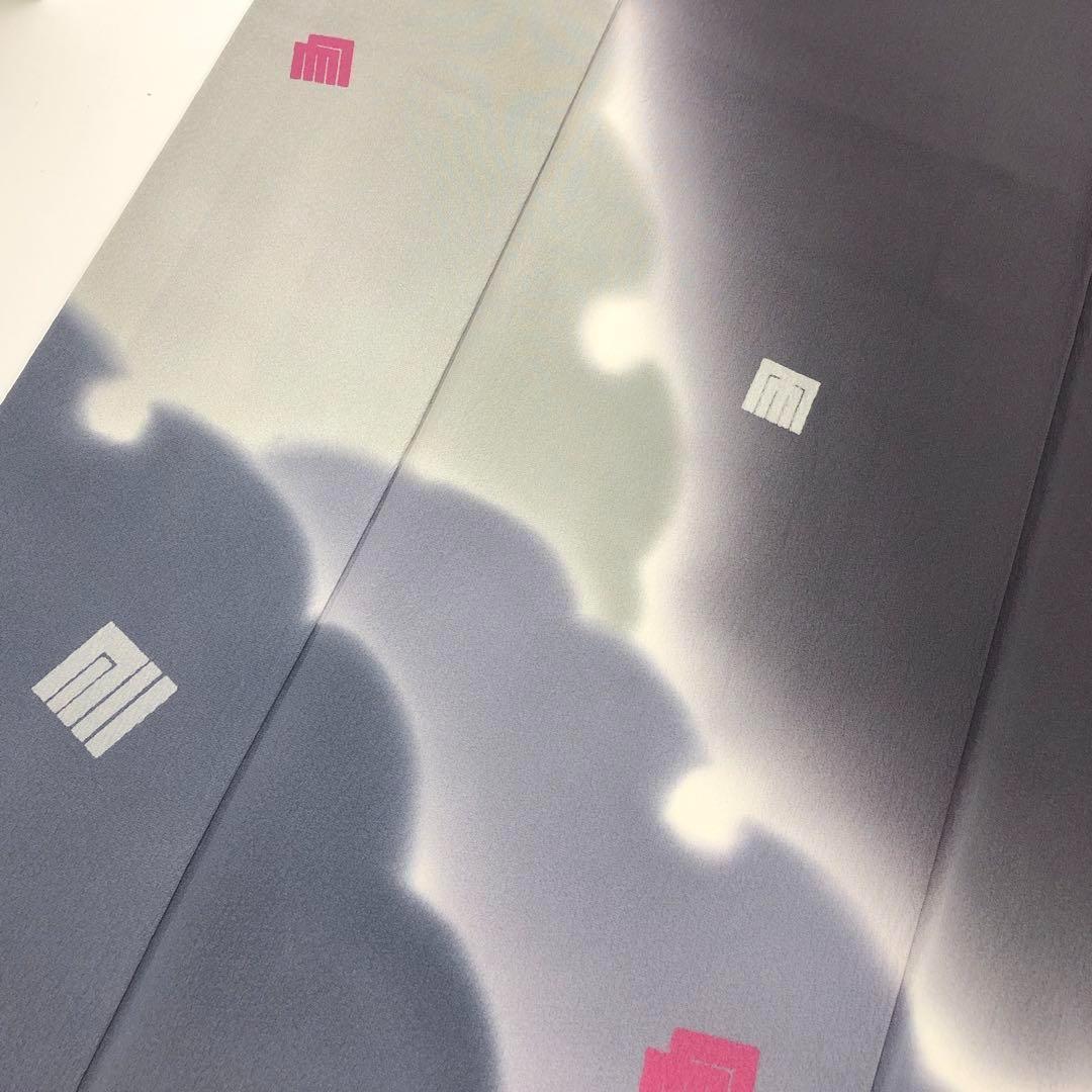 鶴の音羽色の縮緬に雪輪柄の暈しに飛び柄の源氏香の柄裄がデザインされた素敵なお品でございます。