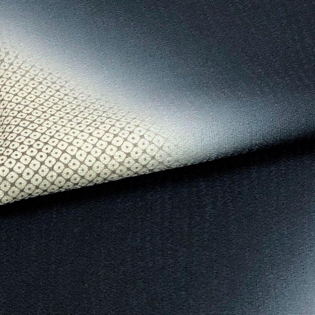 紺色のお色味に白い灯りのような上品な暈し、鹿子模様がデザインされた素敵なお品でございます。