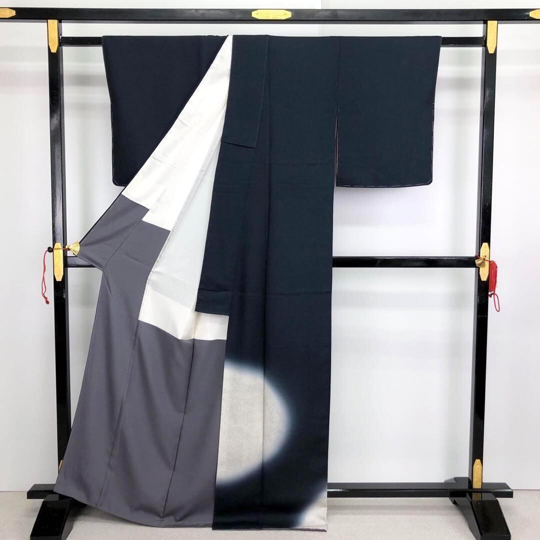 付下げ 上品な暈し 鹿子模様 紺色 K-3250 着物 きもの kimono 和服 和装 中古 リサイクル着物 【送料無料】