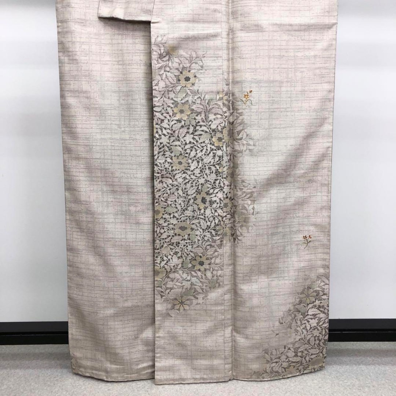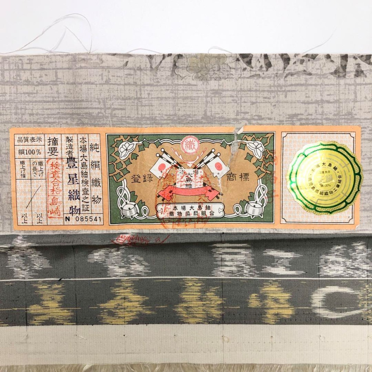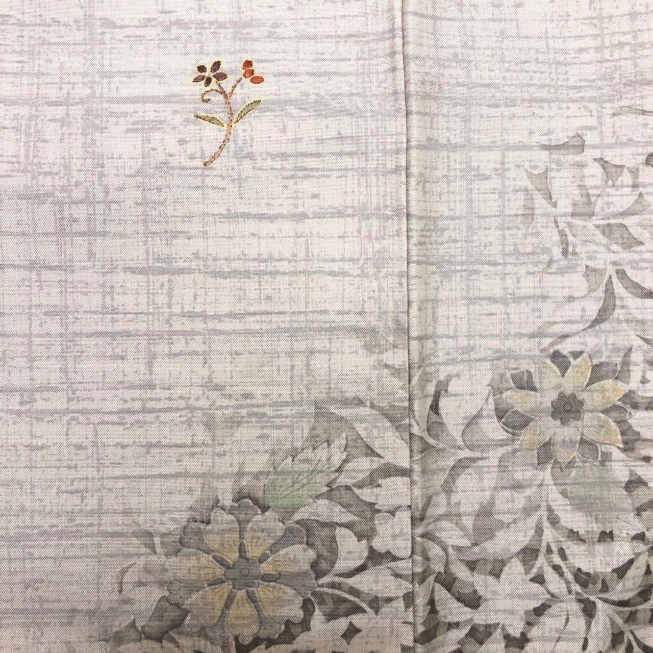 本場大島紬 染大島 花草模様 くすみカラー 刺繍 証紙付 白練色 K-3249