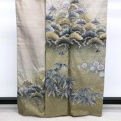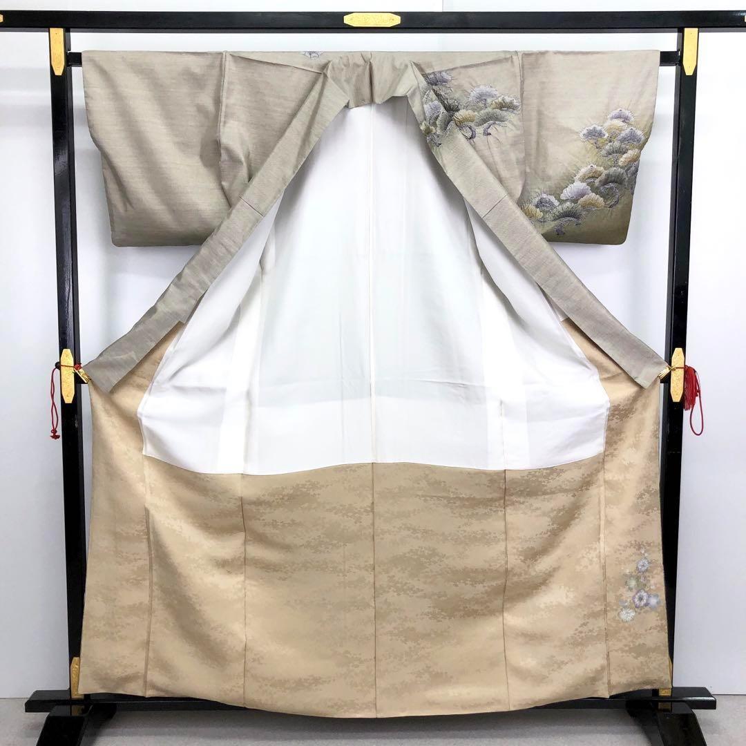 仙太郎、象牙色ベースのお色味の染大島に美しい辻が花絞り、松、笹柄がデザインされた素敵なお品でございます。
