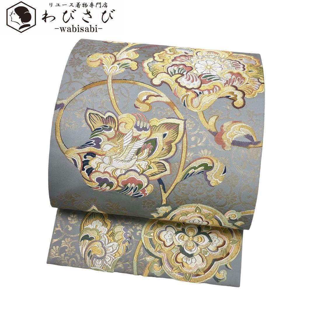 袋帯 人間国宝 無形文化財保持者 吉田文之 宝相華唐草文 白銅色 O-3069