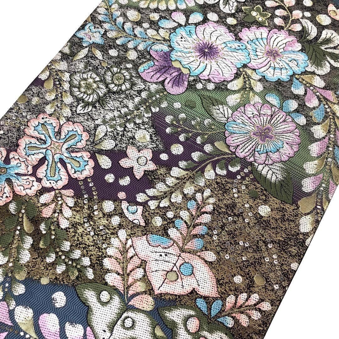 袋帯 美しい辻が花模様 古代貝紫 金銀糸 O-3086