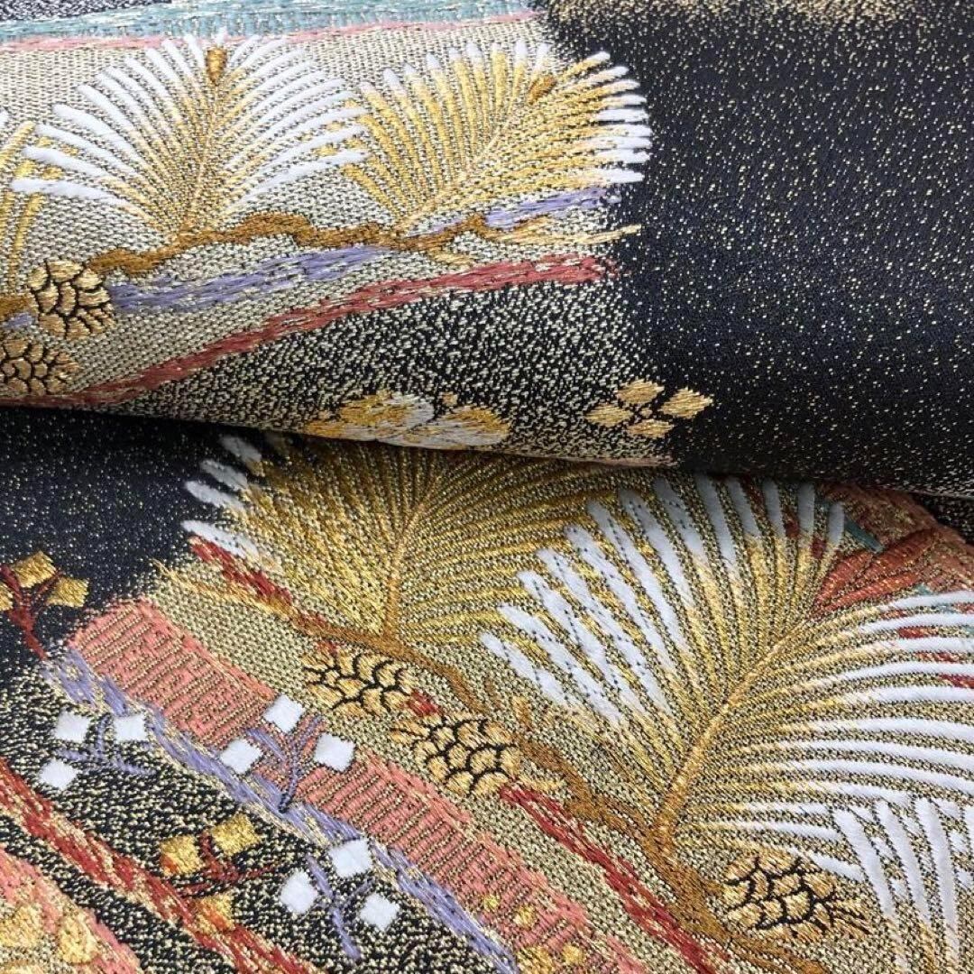 袋帯 吉村織物 蔦屋楽壽 松葉 花模様 飛翔鶴 金銀糸 O-3083 着物 きもの kimono 和服 和装 中古 リサイクル着物 【送料無料】