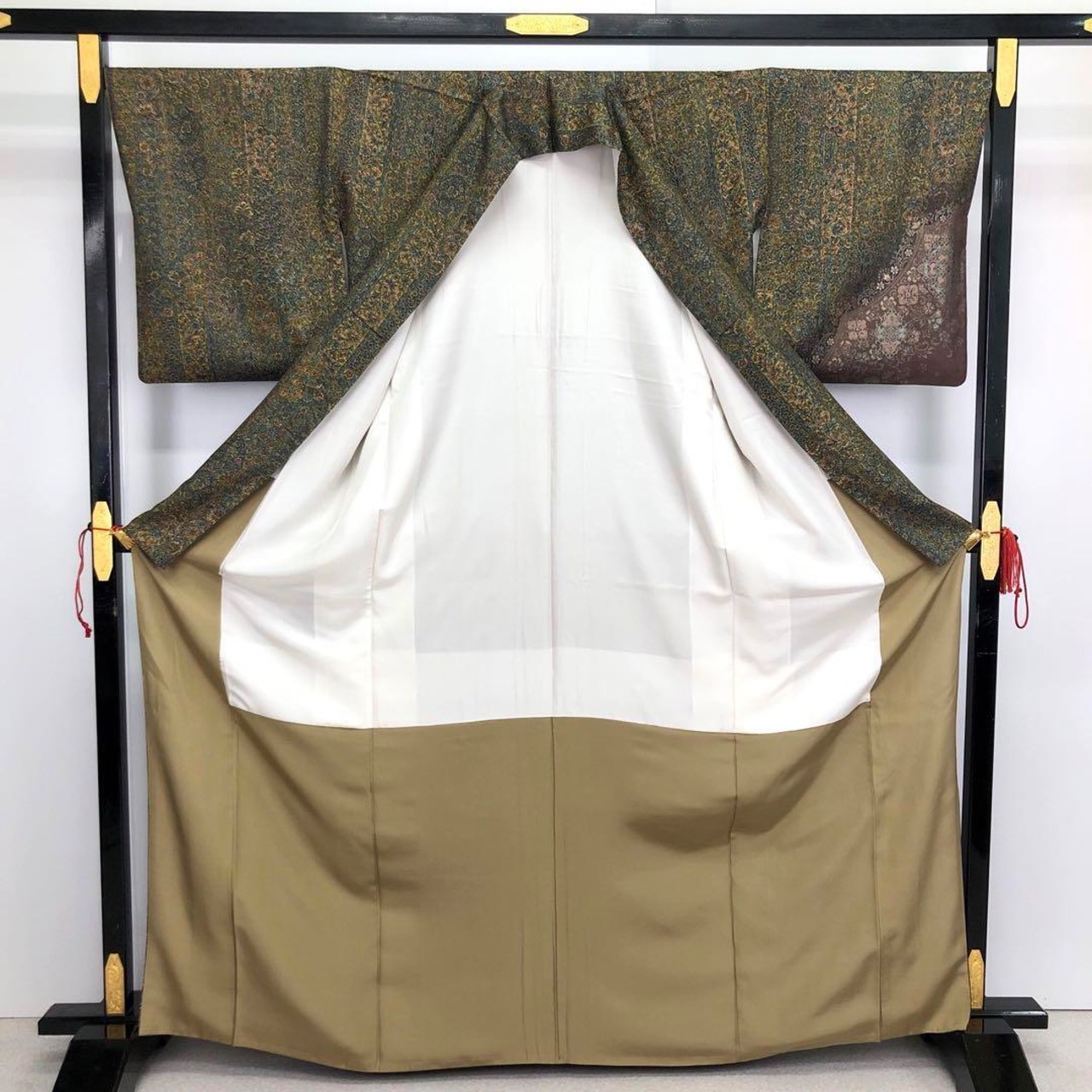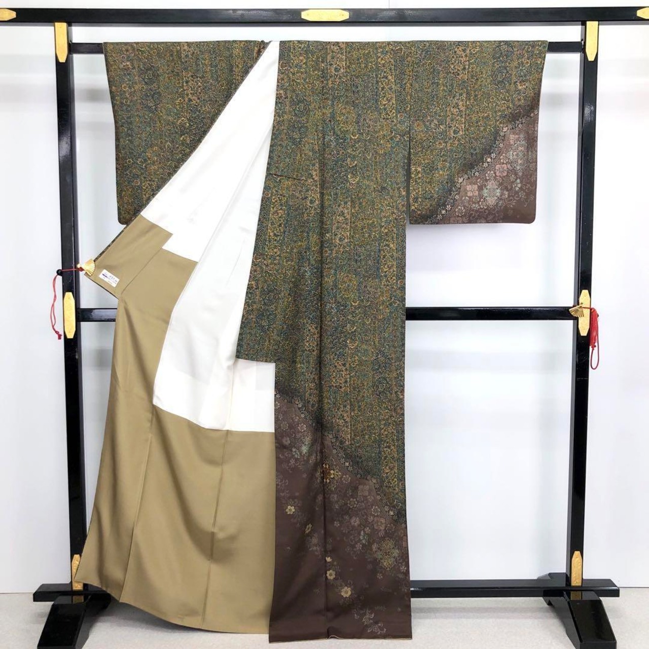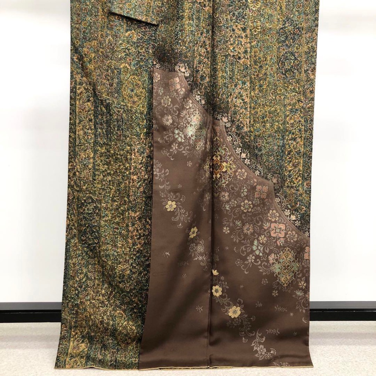 訪問着 美しい花更紗 刺繍 紬 ガード加工 トールサイズ K-3233