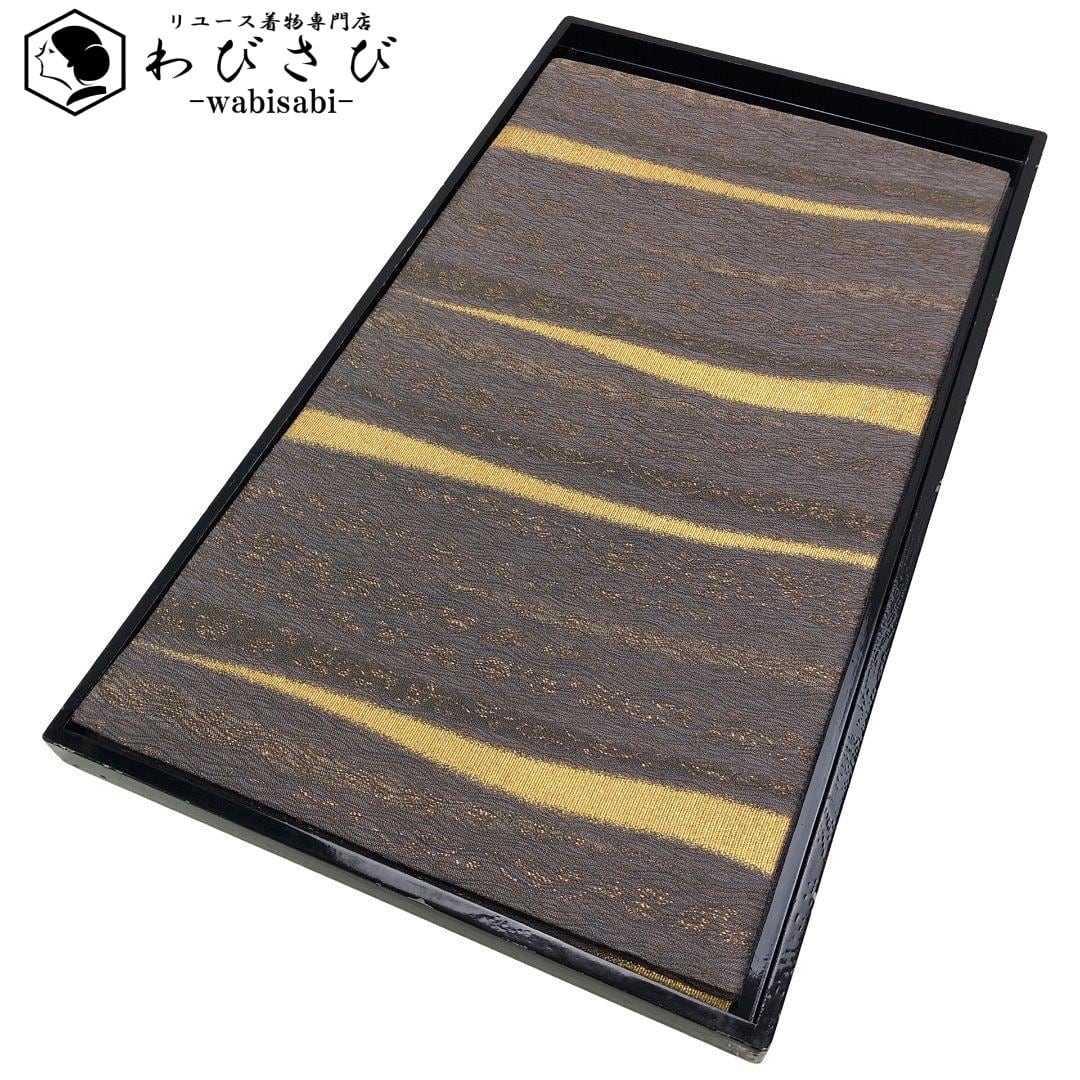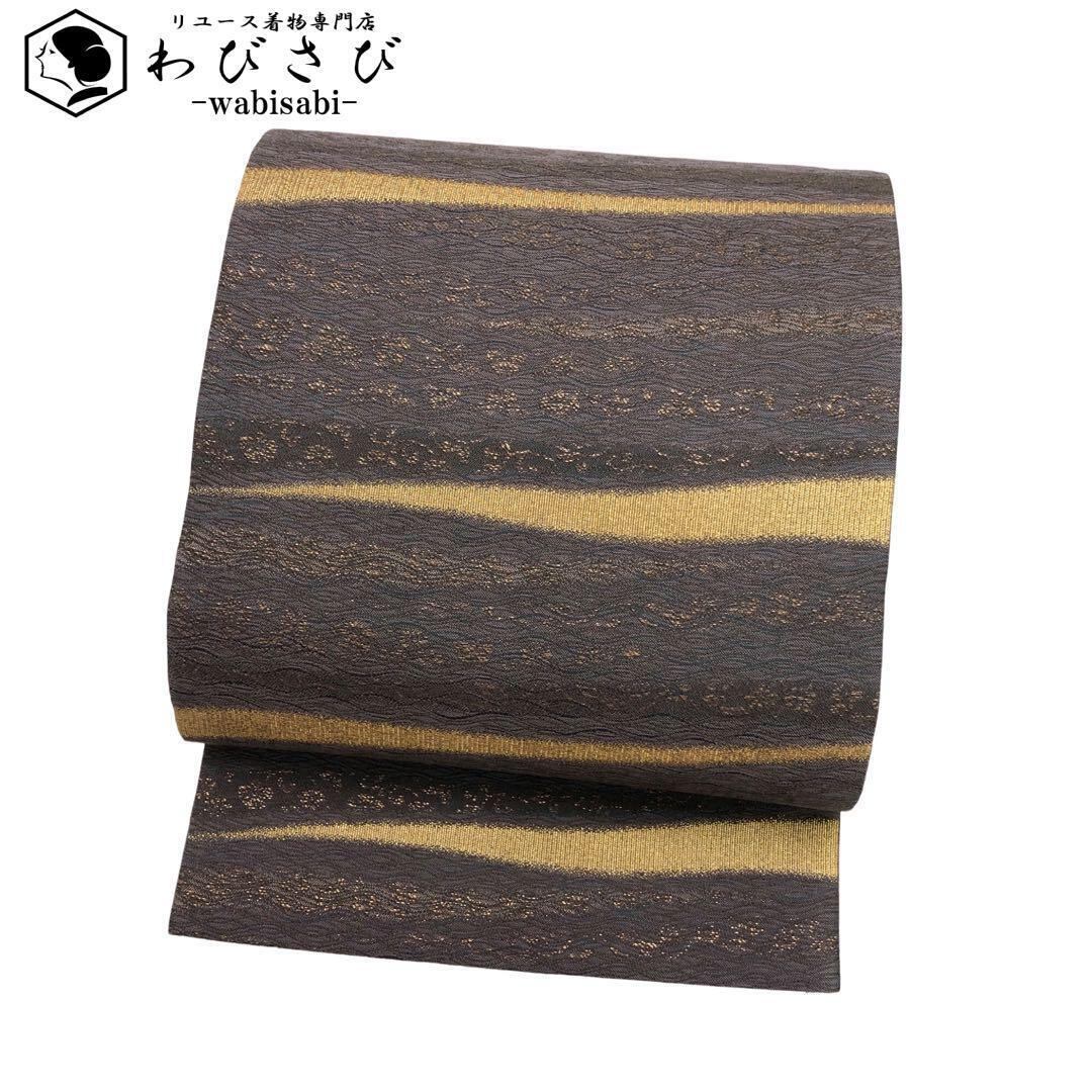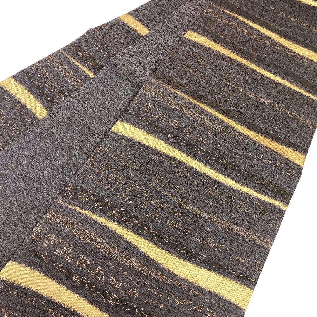 黝色のお色味に金糸を使った横柄のよれ縞模様がデザインされた落ち着きのある素敵なお品でございます。