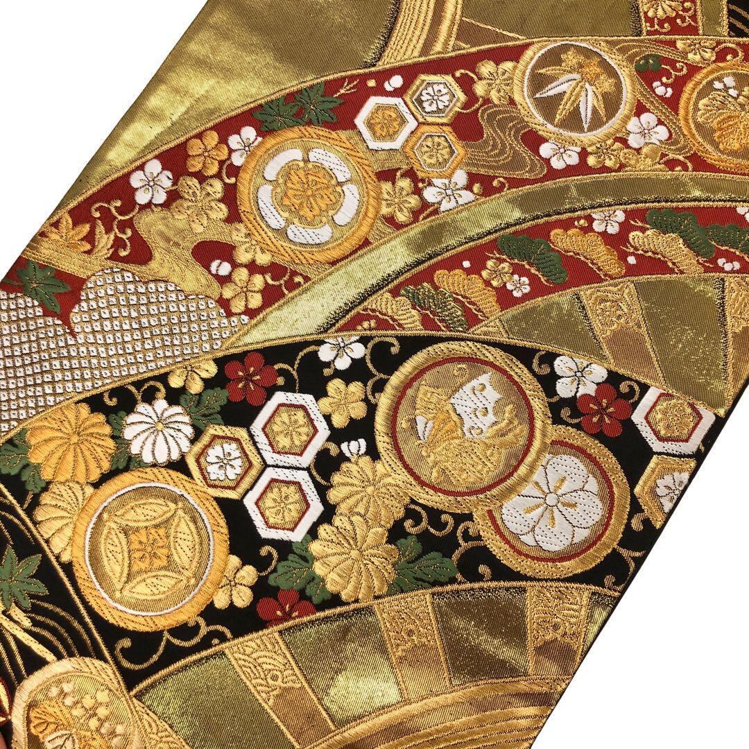 袋帯 慶錦華車紋 車輪に花模様 金糸 黒色 O-3116