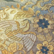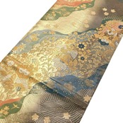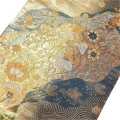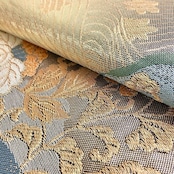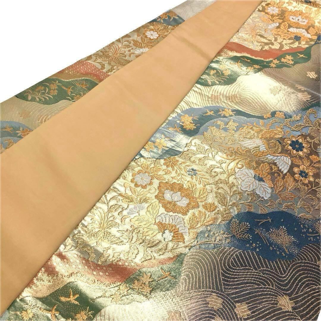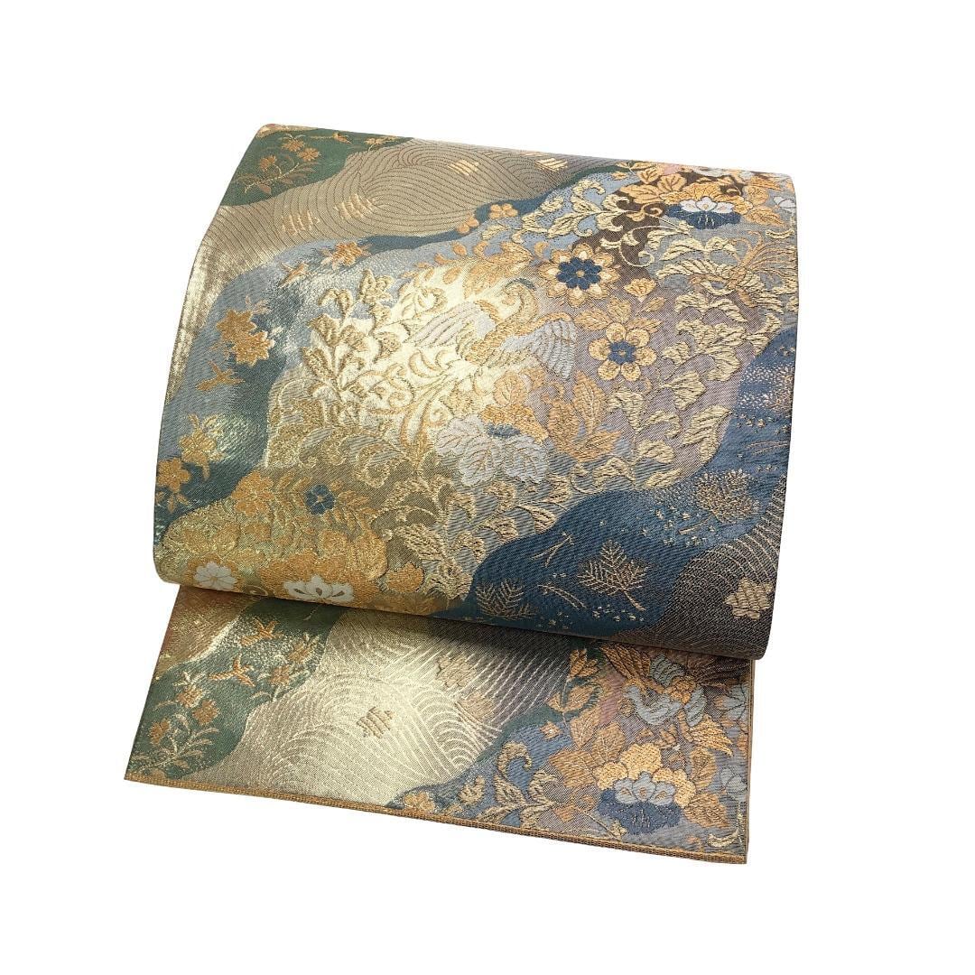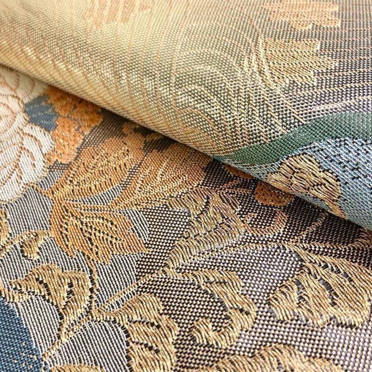 金糸を使った煌びやかな織りで道長取り、花唐草に鳥模様がデザインされた素敵なお品でございます。
