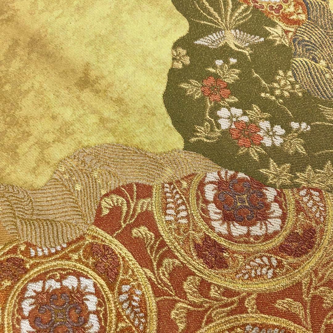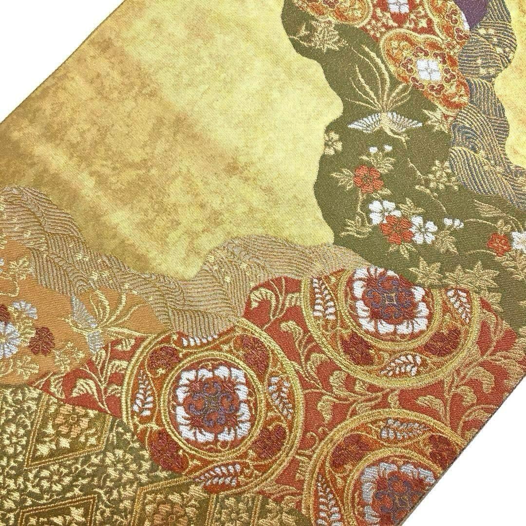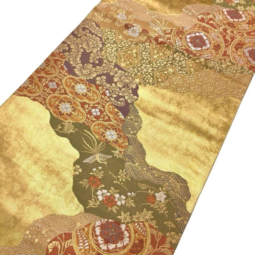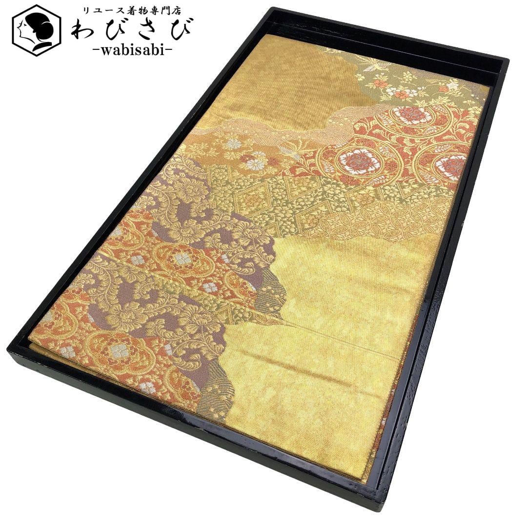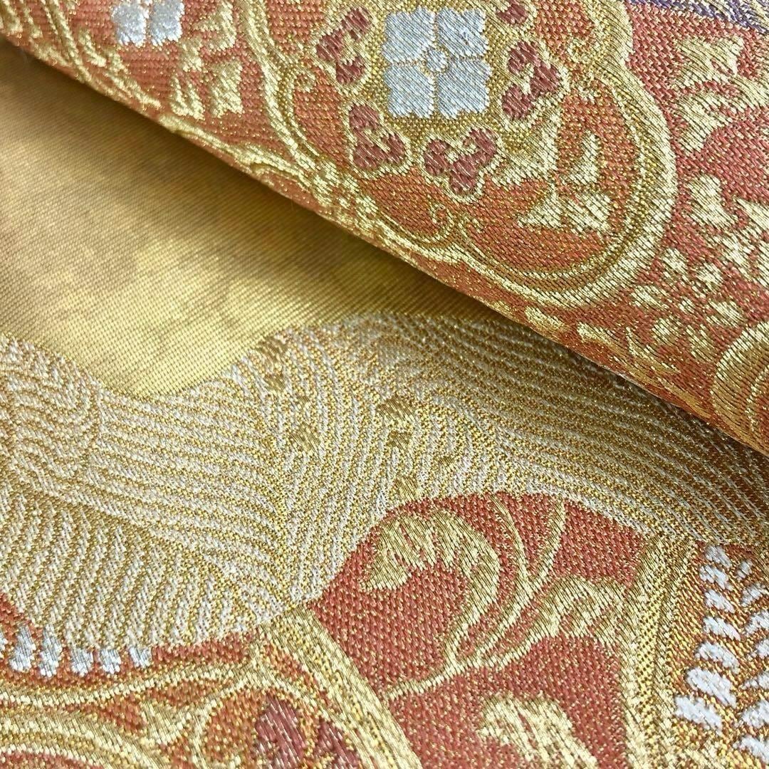 金色ベースの道長取り、美しい華柄模様、鳳凰などの柄裄がデザインされた素敵なお品でございます。