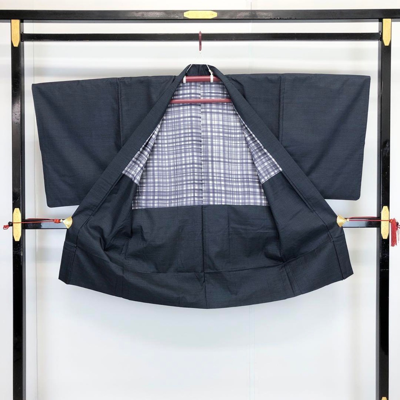100亀甲の藍泥染の美しい藍色、羽裏にはチェック柄がデザインされた素敵なお品でございます。
