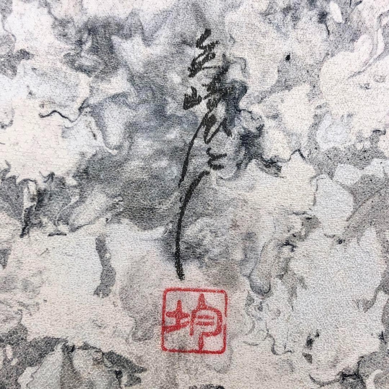 モノトーンベースのモダンで美しい墨流し模様がデザインされた素敵な染めのお品でございます。
