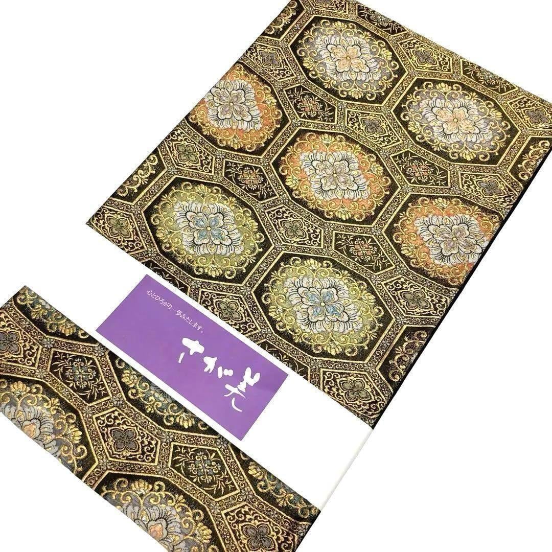 金銀糸が使われた六角に煌びやかで美しい華柄模様がデザインされた素敵なお品でございます。
