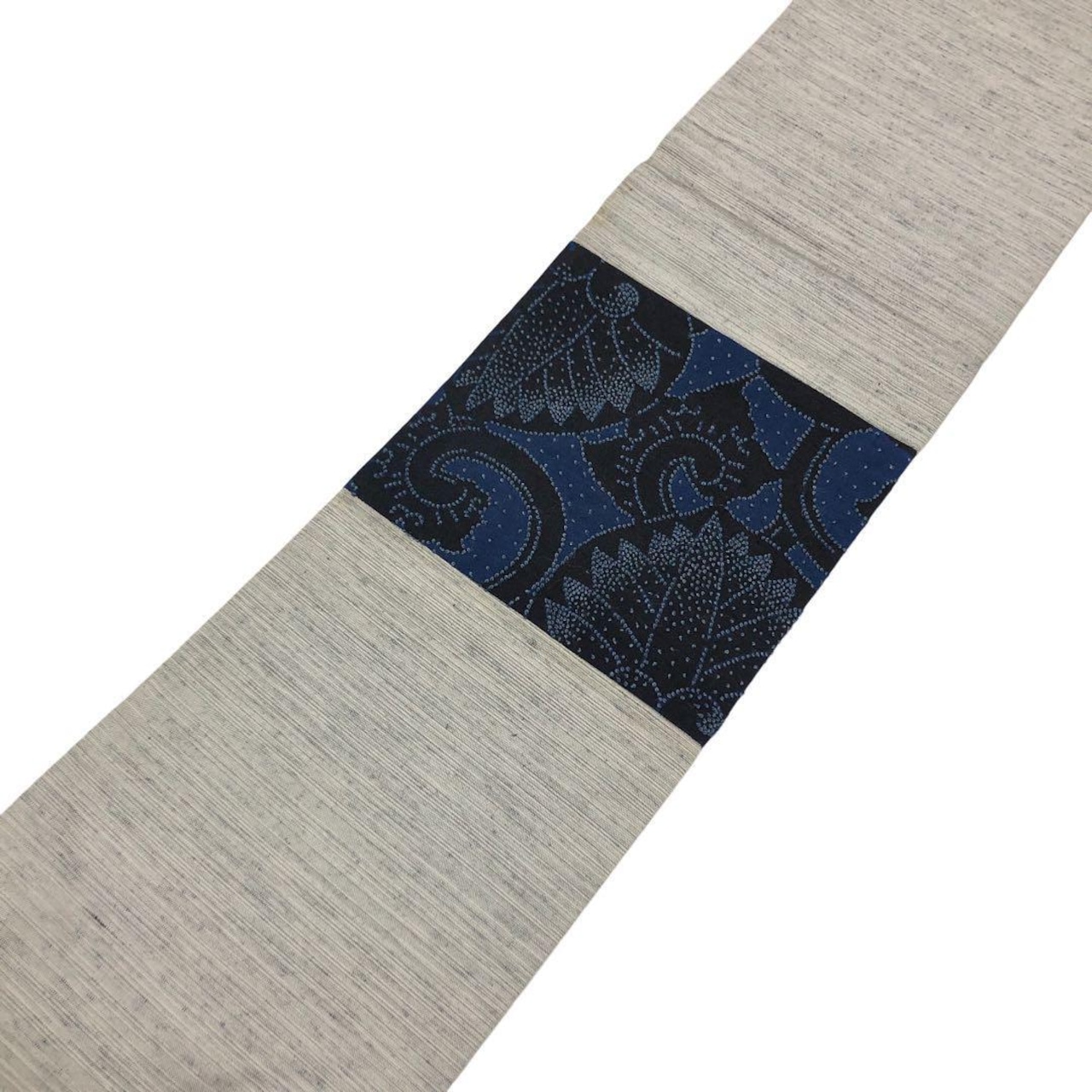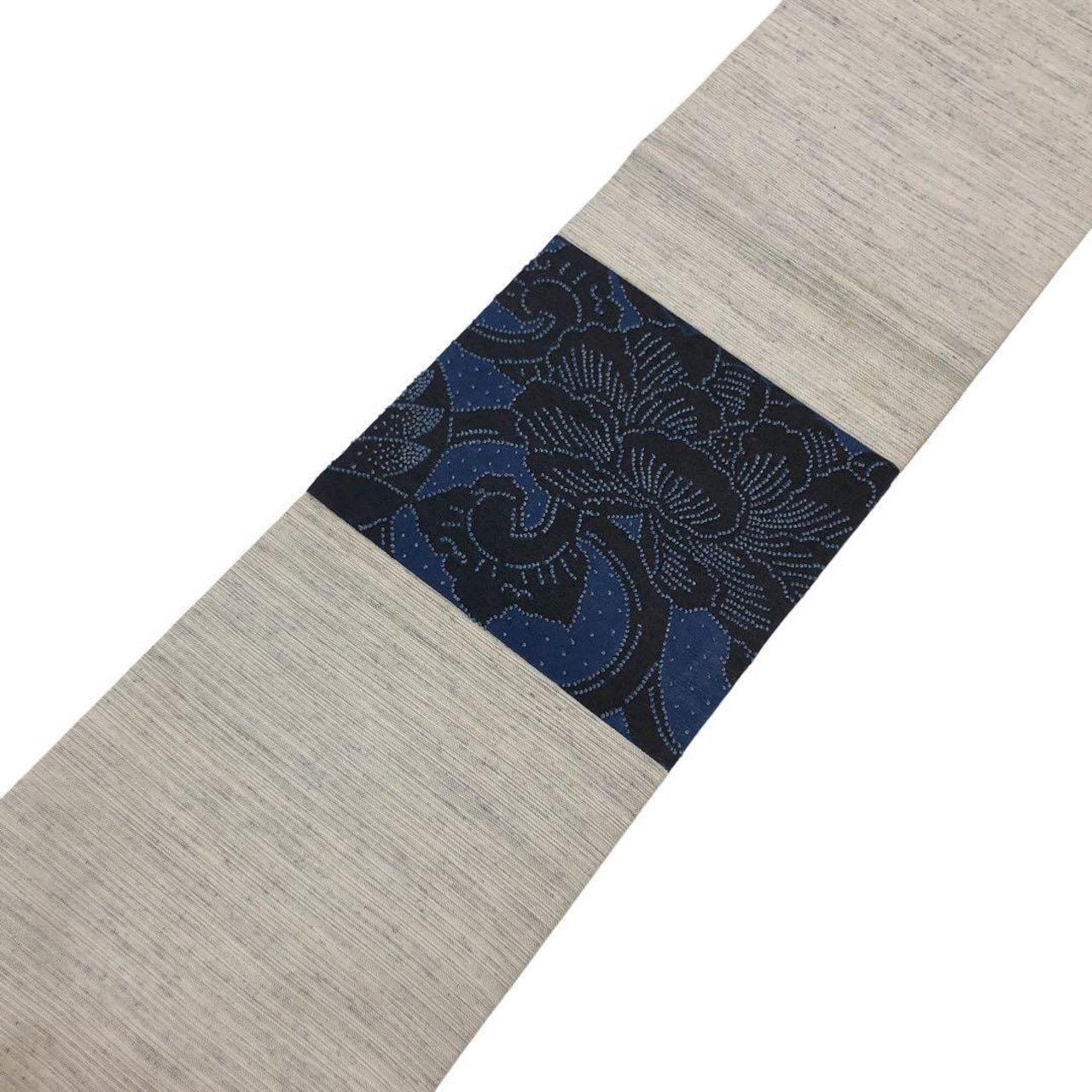 名古屋帯 相良刺繍 藍色の花唐草柄 紬 O-3169