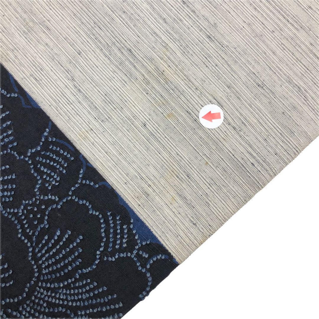 手触りの良い紬地に相良刺繍で藍色と黒色のお色味の花唐草柄がデザインされた素敵なお品でございます。