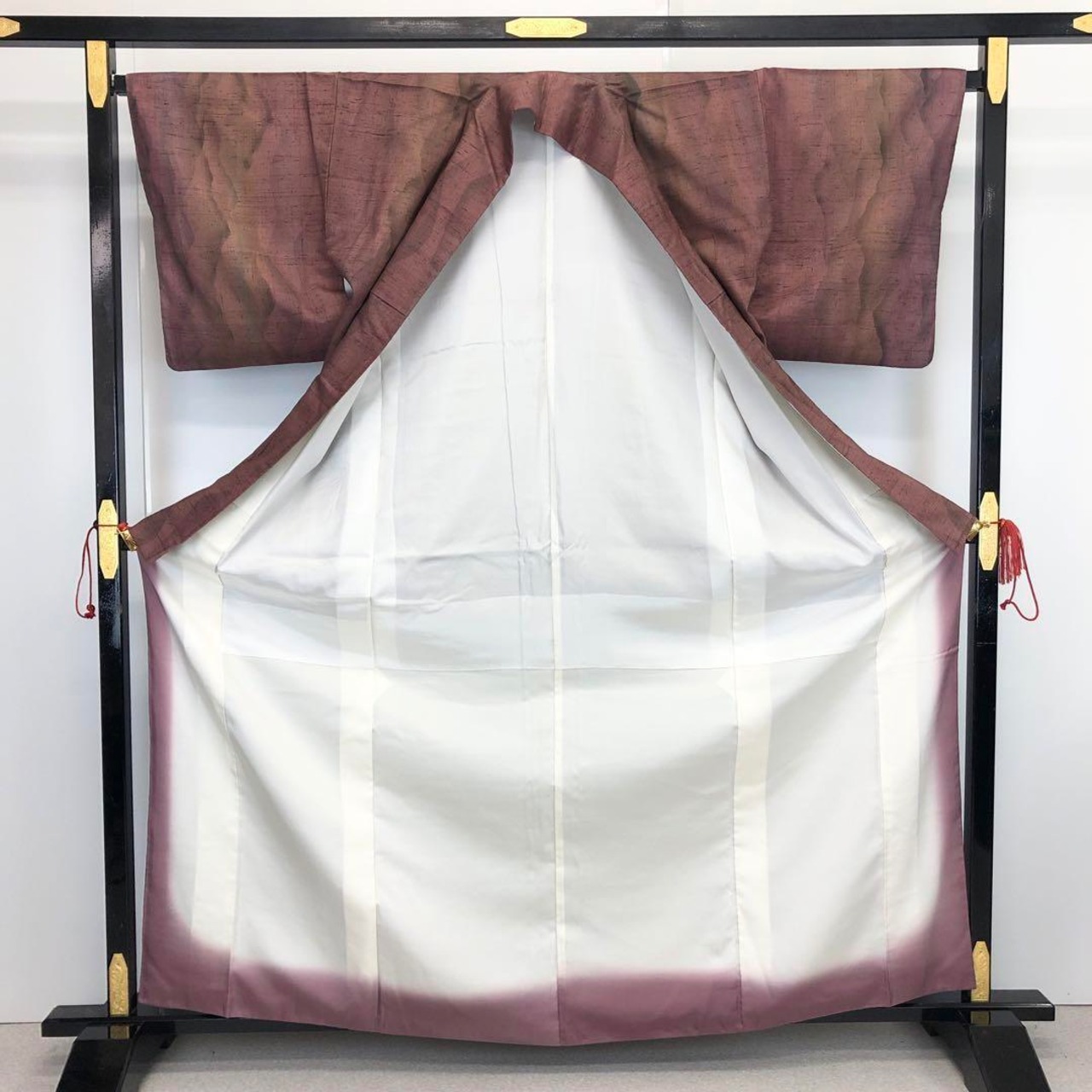 紬着物 上品で雰囲気の良い染め模様 紅鳶色 トールサイズ K-3323