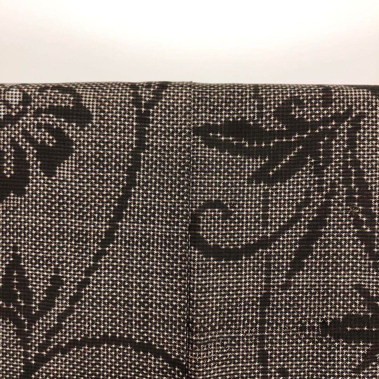 風合いの良い茶泥染に花草柄の織模様がデザインされた素敵なお品でございます。