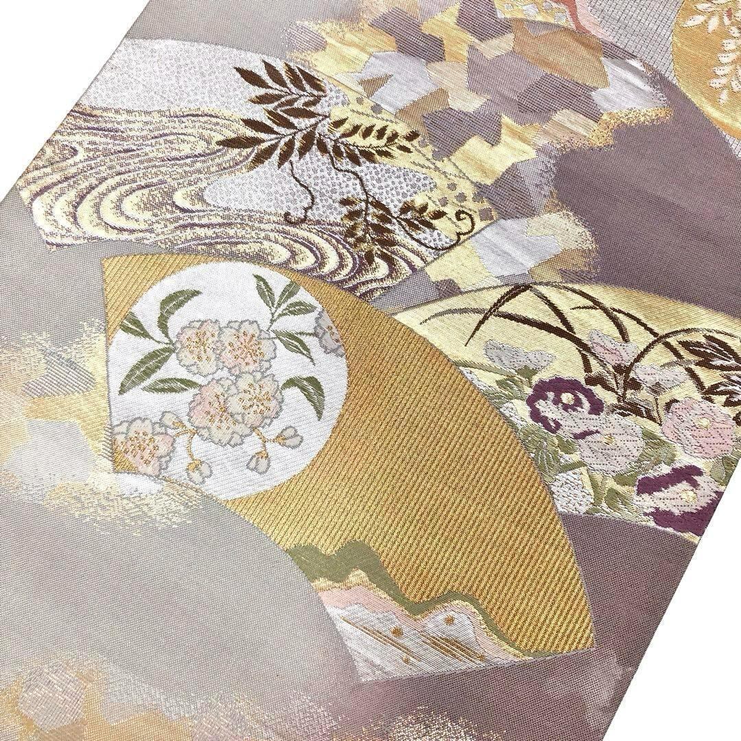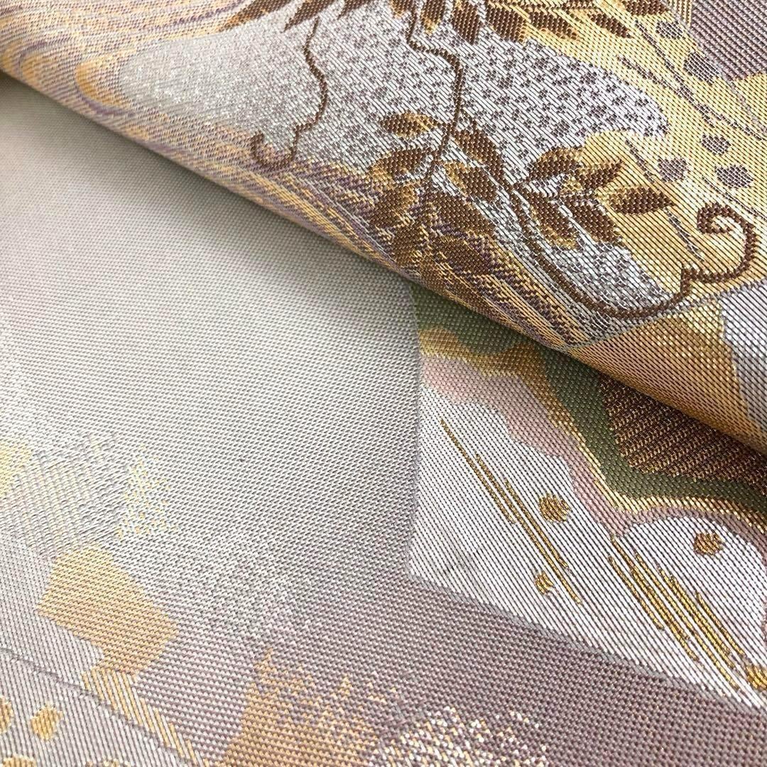 袋帯 地紙に四季の花模様 満月 グラデーション 金銀糸 O-3189 着物 きもの kimono 和服 和装 中古 リサイクル着物 【送料無料】