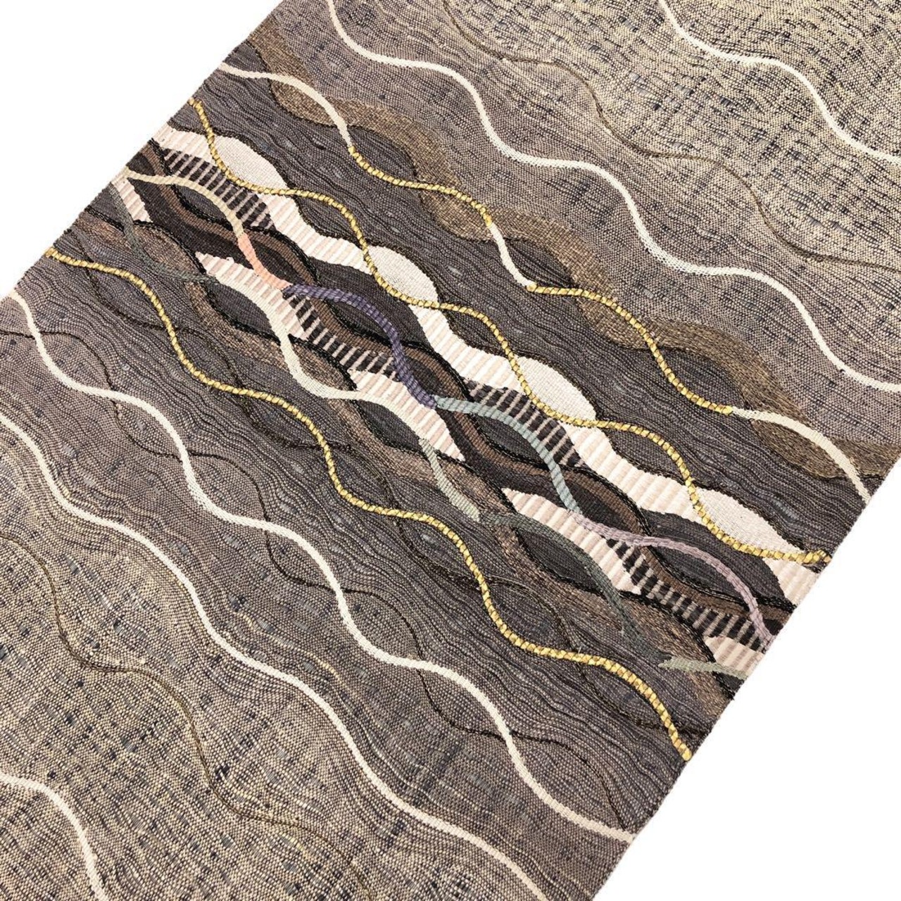 袋帯 すくい織 雰囲気の良い曲線模様 薄蕎麦切色 O-3224