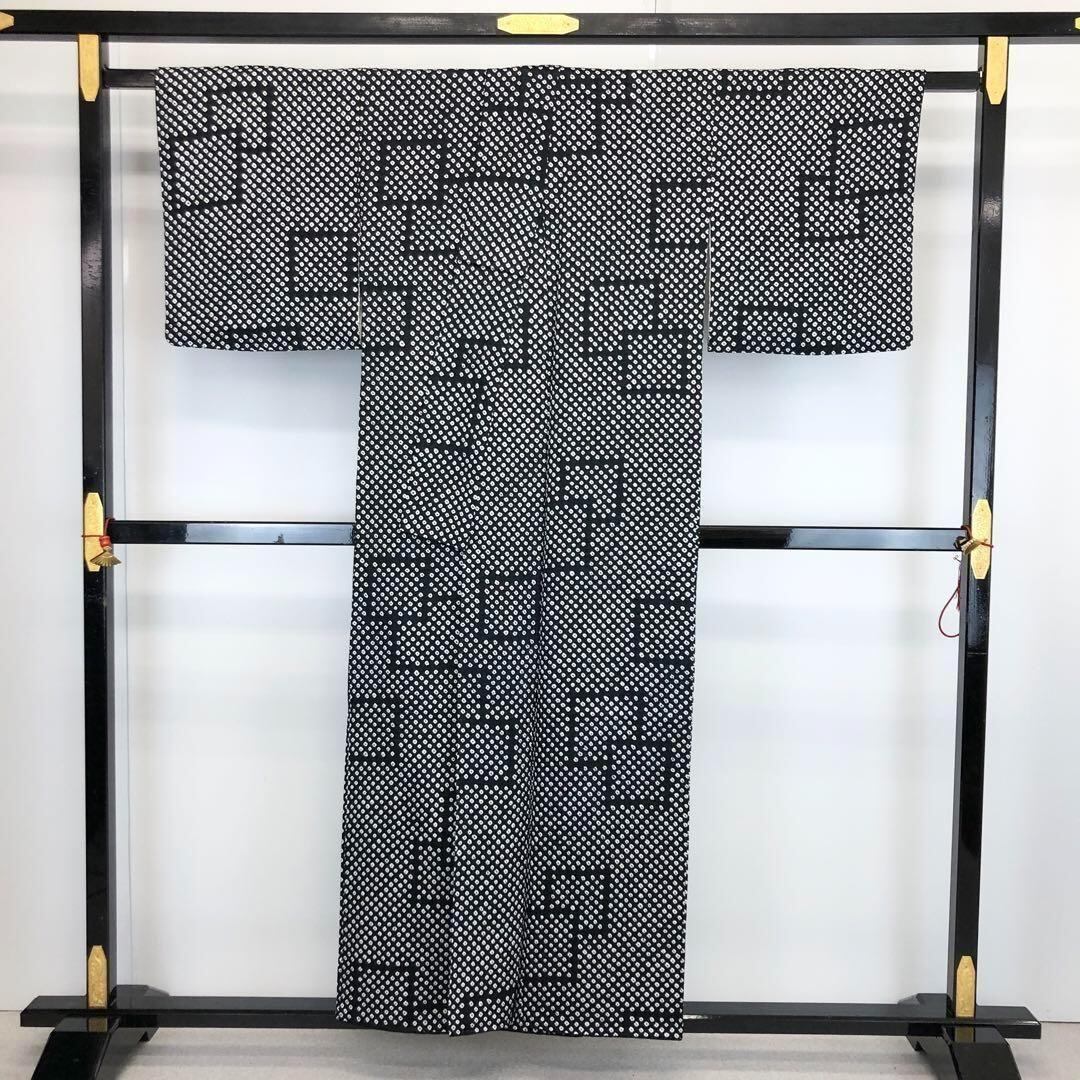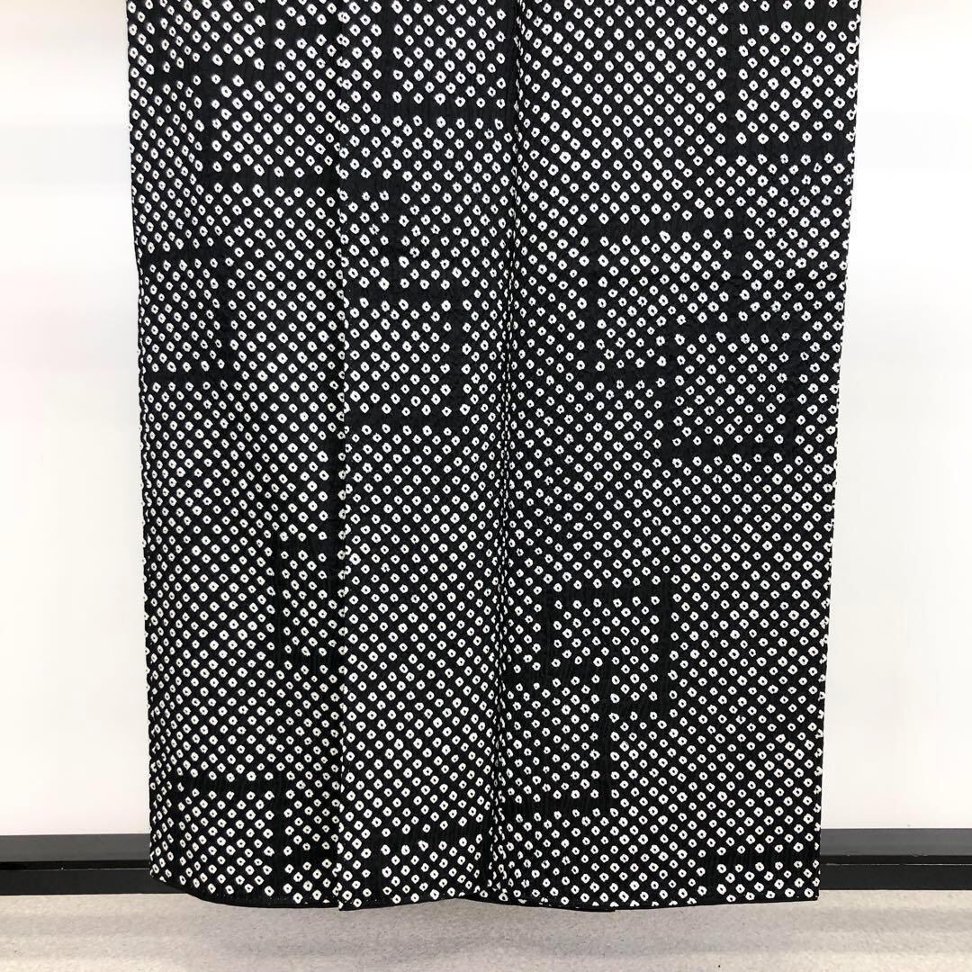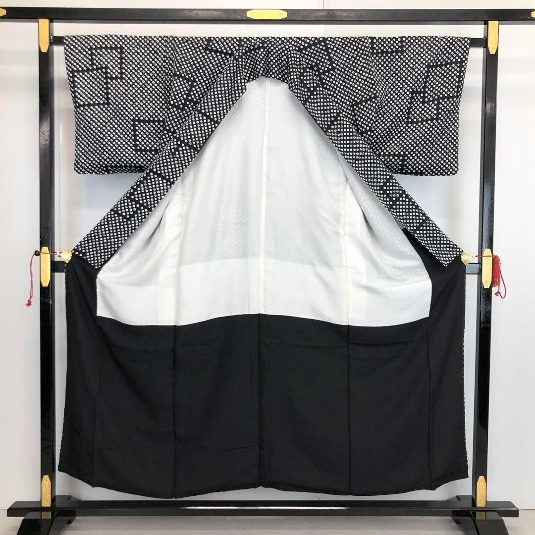 小紋 総絞り 鹿の子絞り 四角模様 モノトーン K-3352 着物 きもの kimono 和服 和装 中古 リサイクル着物 【送料無料】