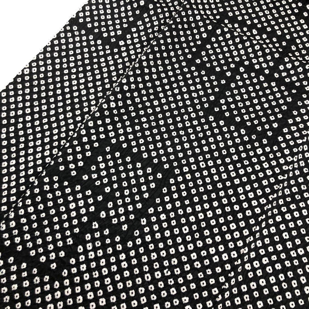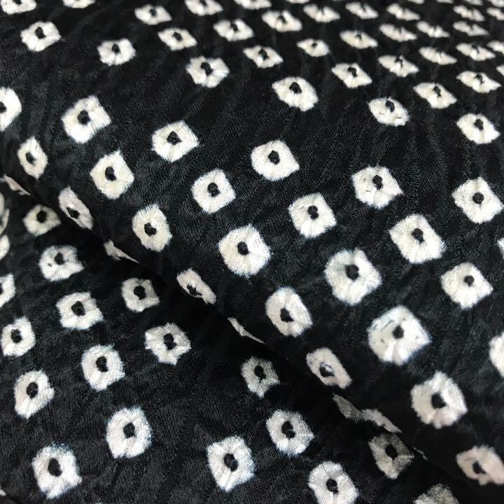 黒色のモノトーンのお色味、鹿の子絞りに四角模様がデザインされた素敵なお品でございます。