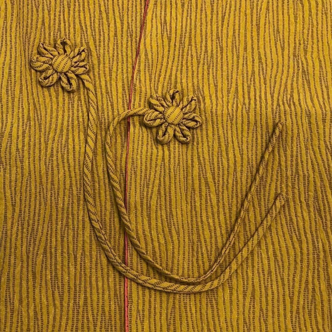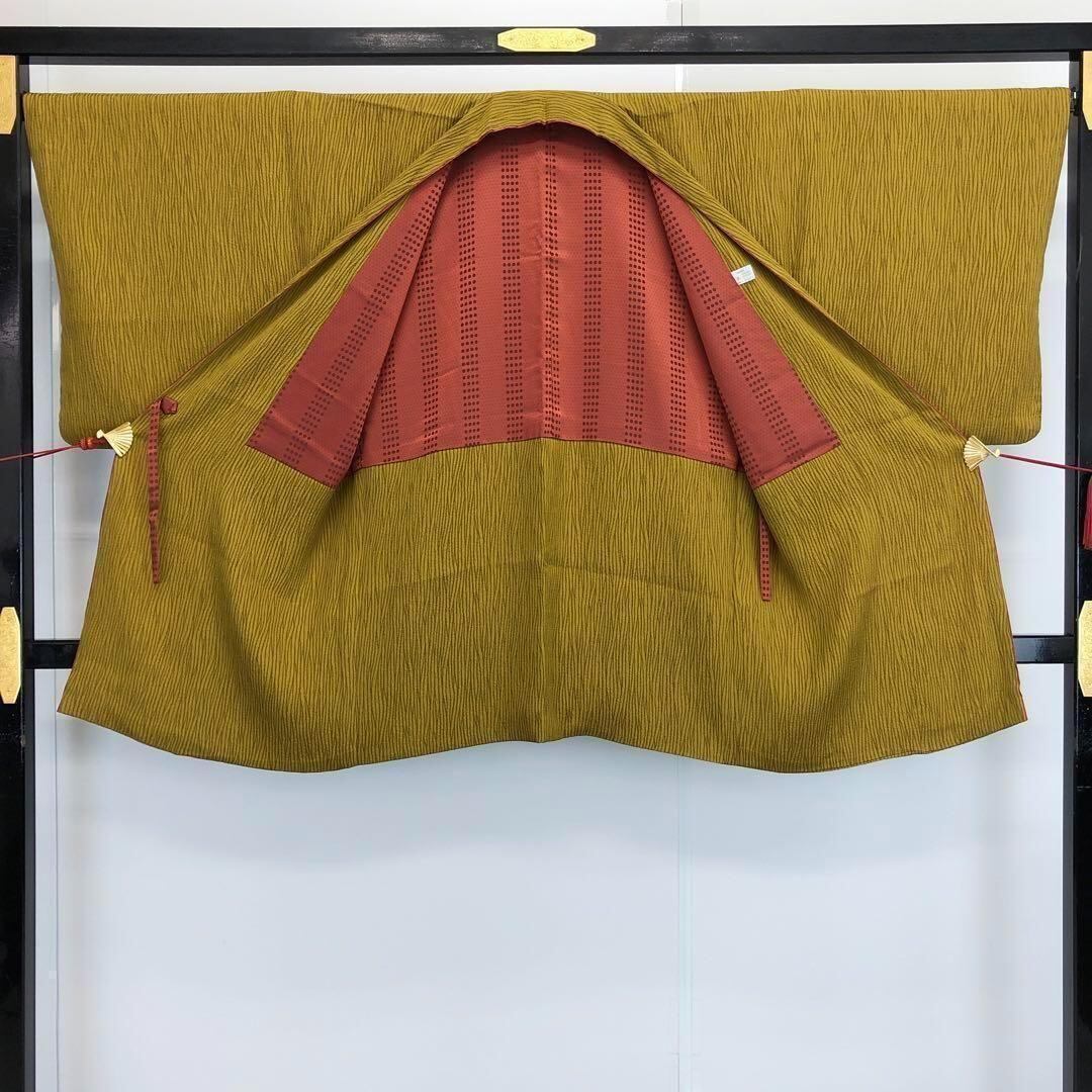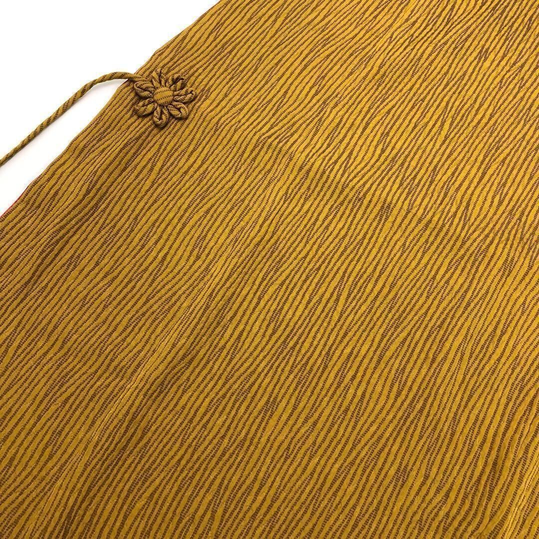 木蘭色の落ち着いた黄色系のお色味に縦柄模様がデザインされた素敵なお品でございます。