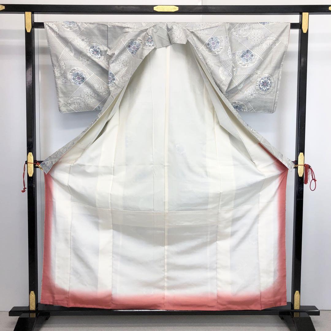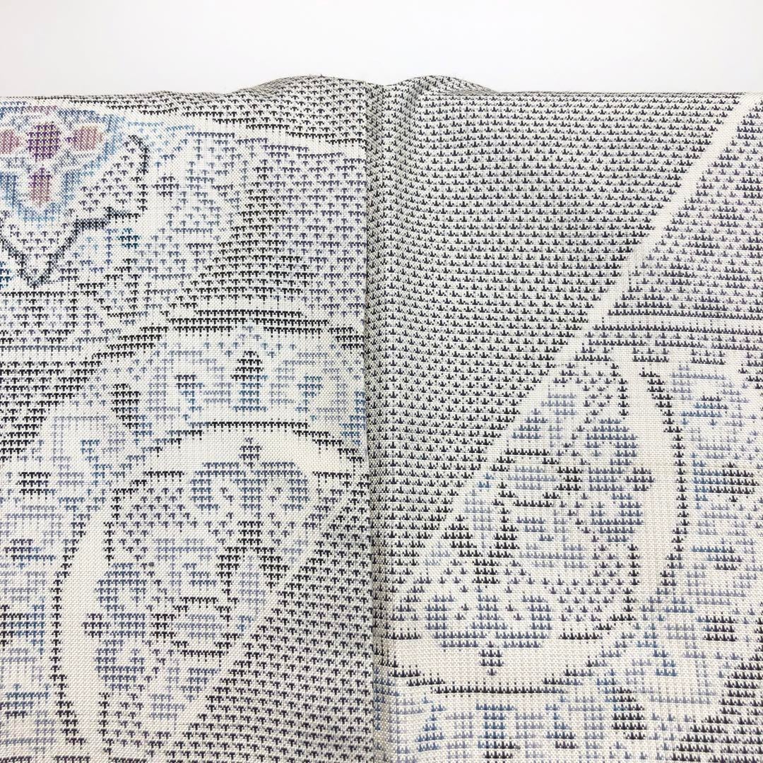 藤絹織物、都喜エ門の乳白色にほんのり淡い色彩の美しい華模様の織柄がデザインされた素敵なお品でございます。