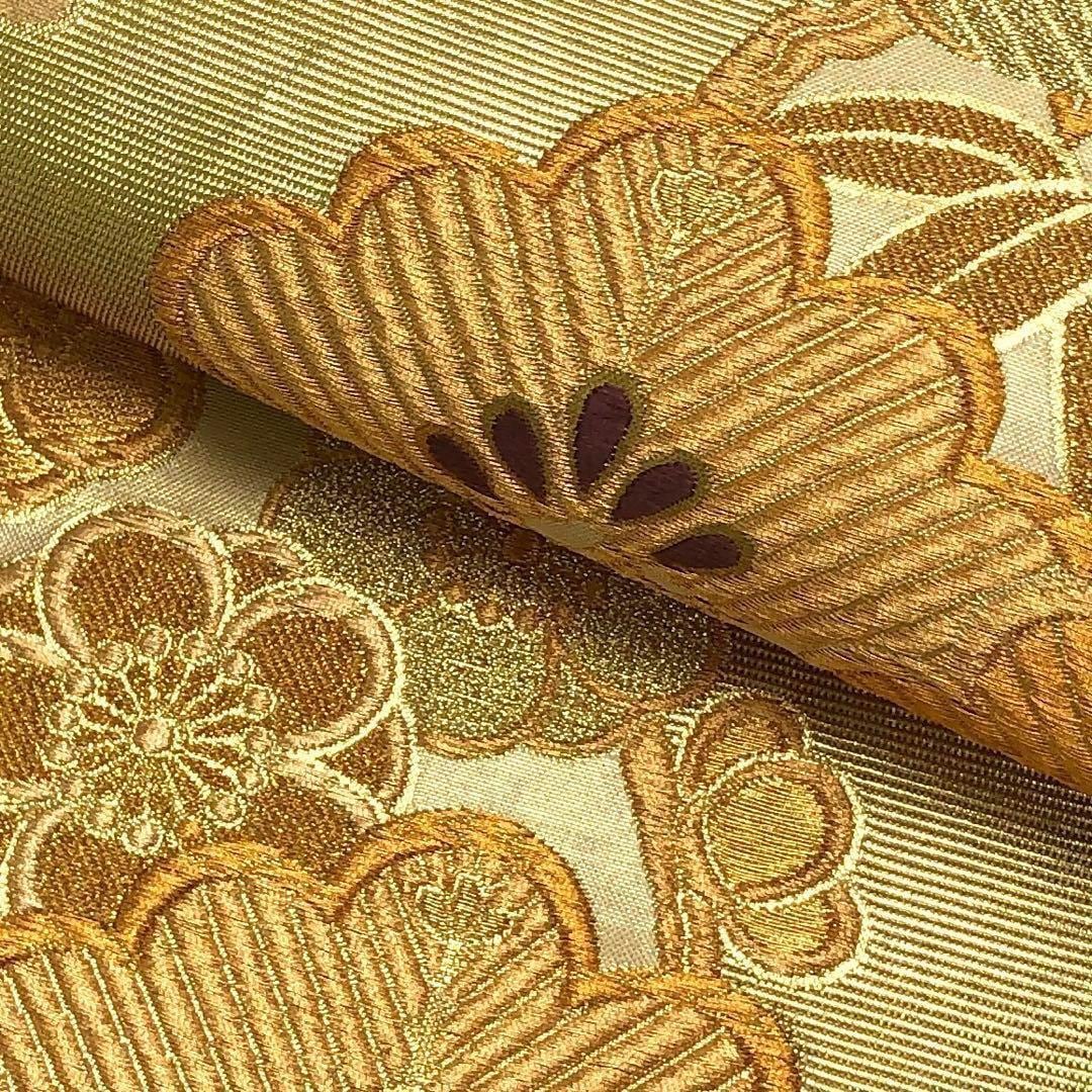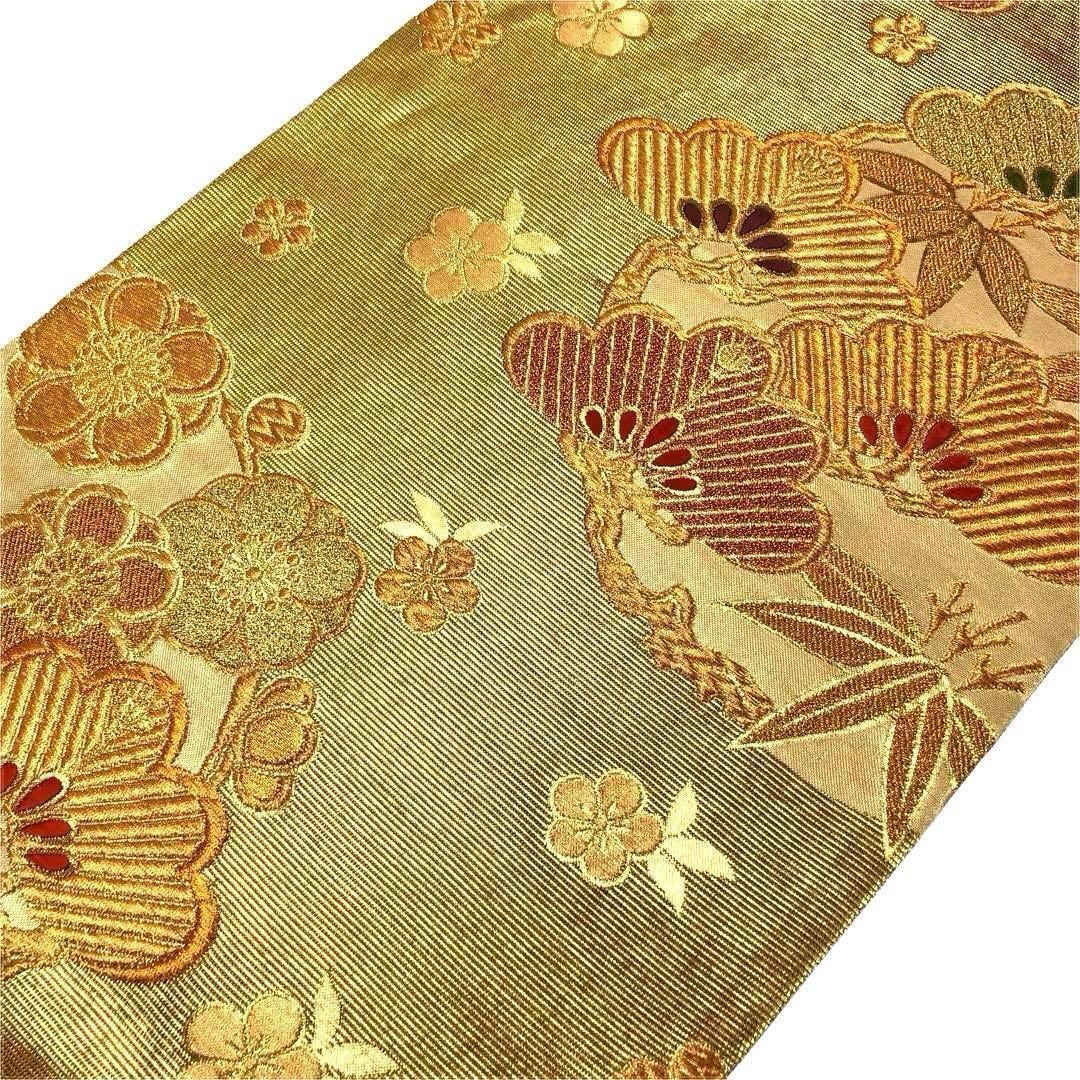 金糸を使った金色ベースの煌びやかなお色味に松竹梅の柄裄がデザインされた素敵なお品でございます。