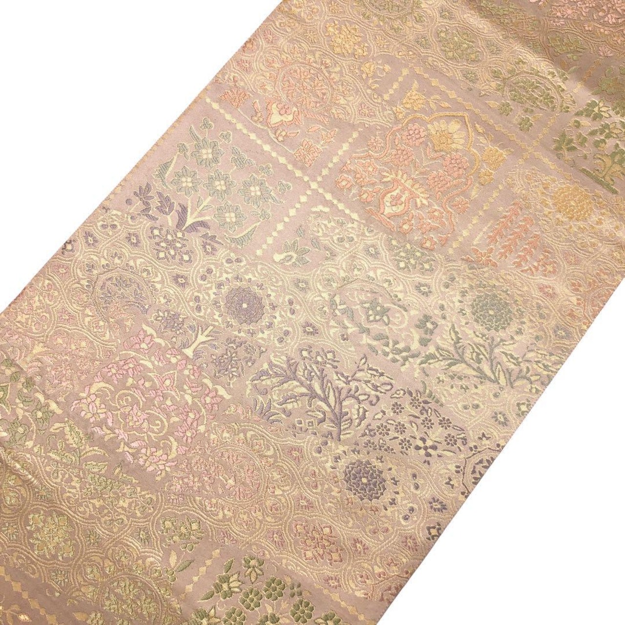袋帯 箔屋清兵衛 西陣織 美しい花模様 灰桜色 O-3212