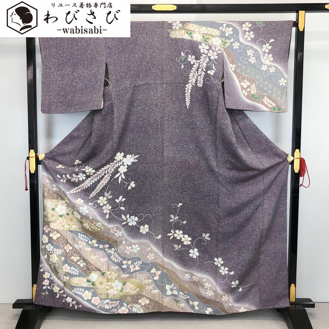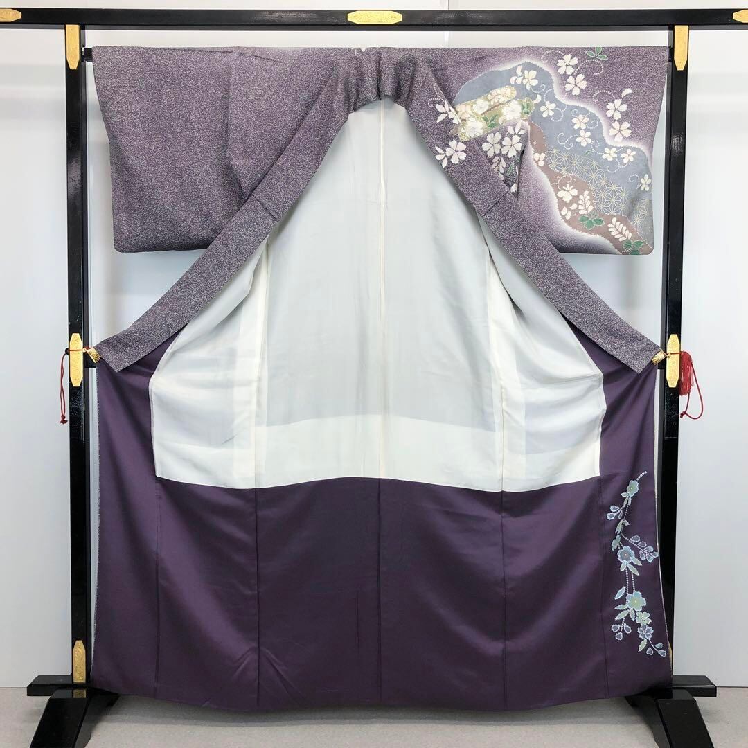 訪問着 美しい辻が花絞り 金彩 叩き染 葡萄紫色 トールサイズ K-3365