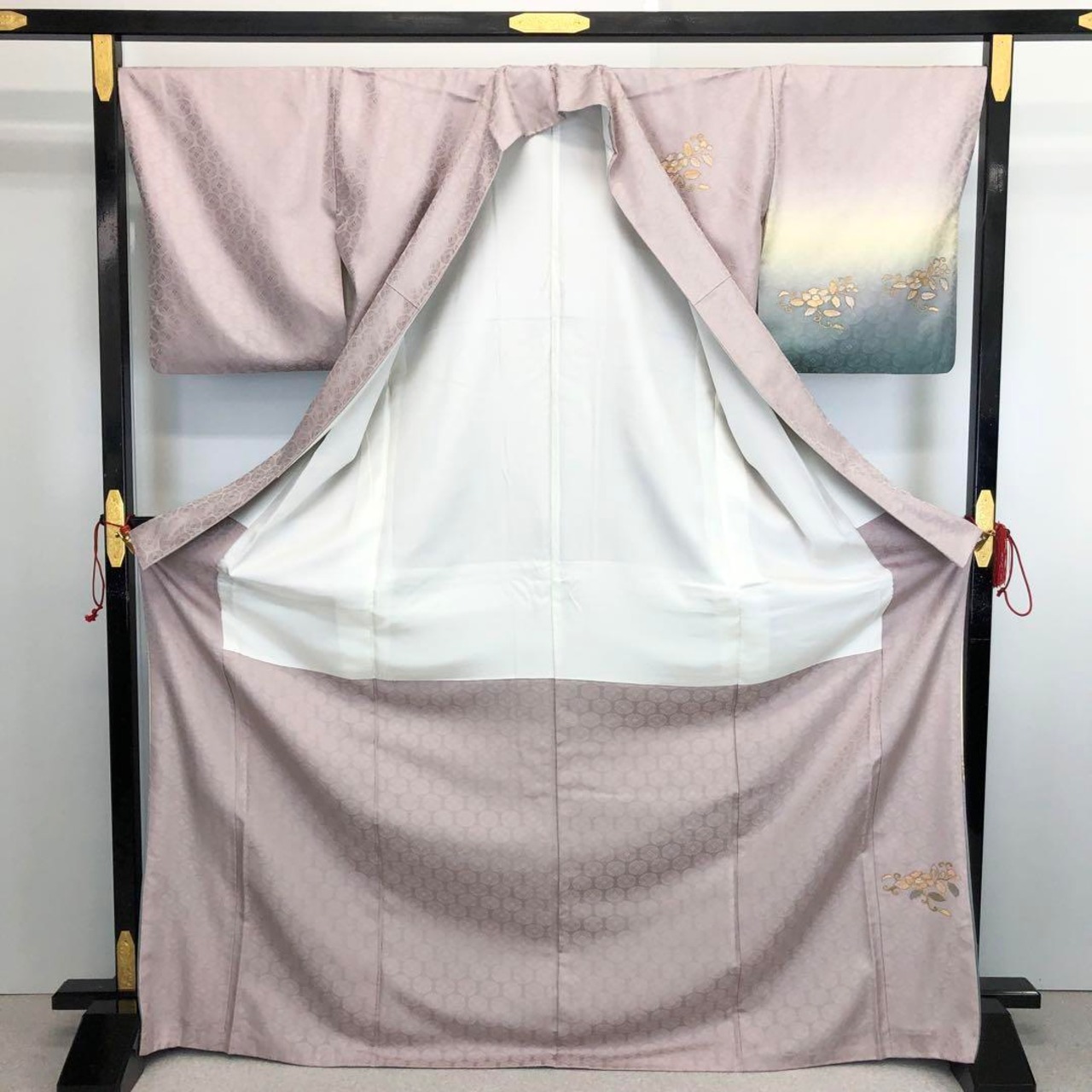 付下げ 岸上純平 椿の花 パステルカラー 白梅色 トールサイズ K-3367