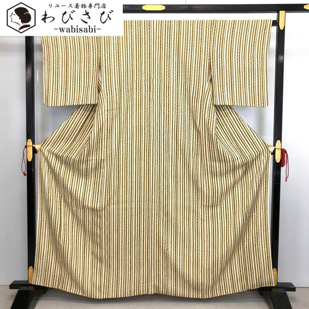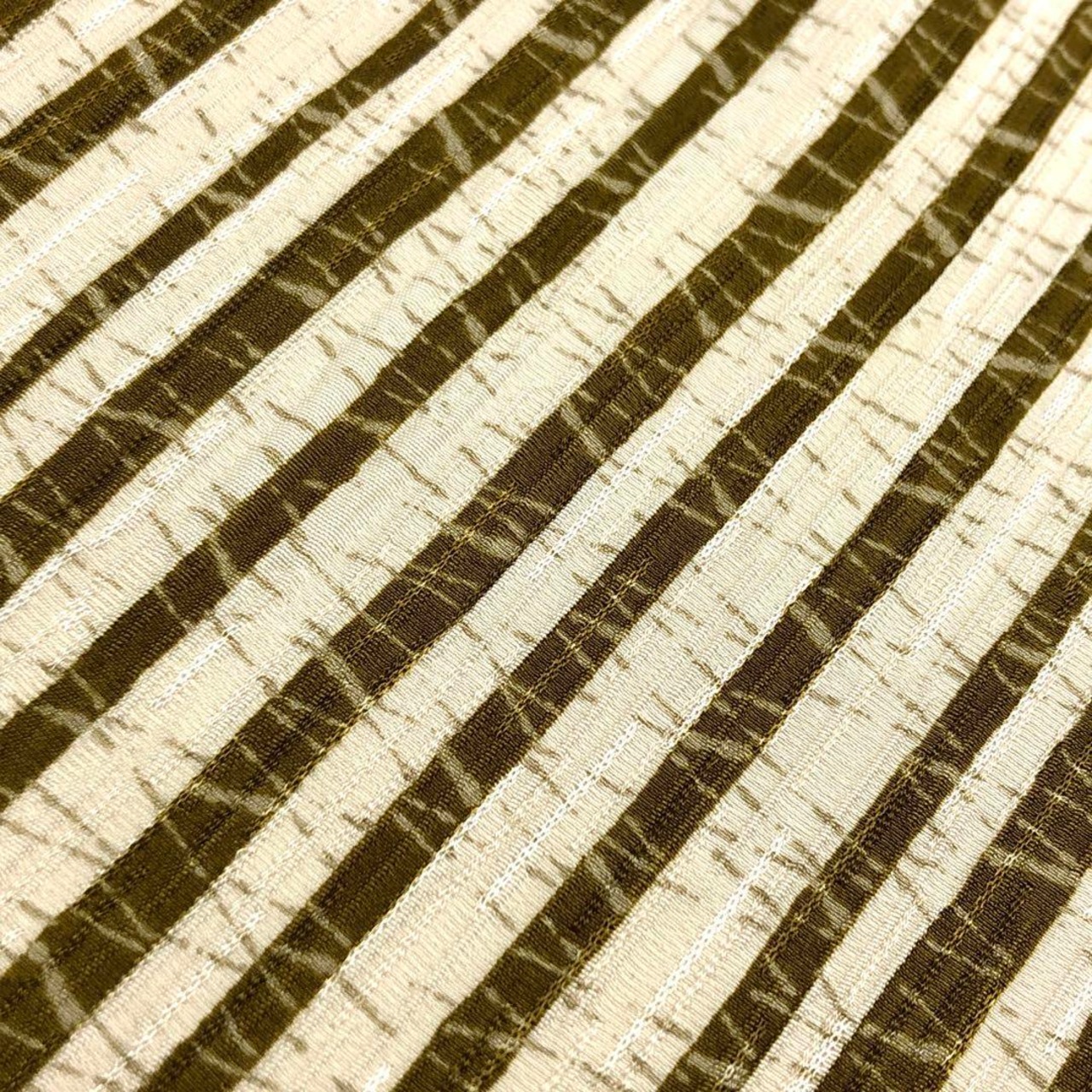 上質な縮緬地に縦柄のストライプがデザインされた素敵なお品でございます。