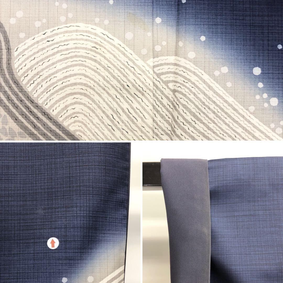 濃藍色の美しく染められた藍色に暈しを使った品のある波模様がデザインされた素敵なお品でございます。
