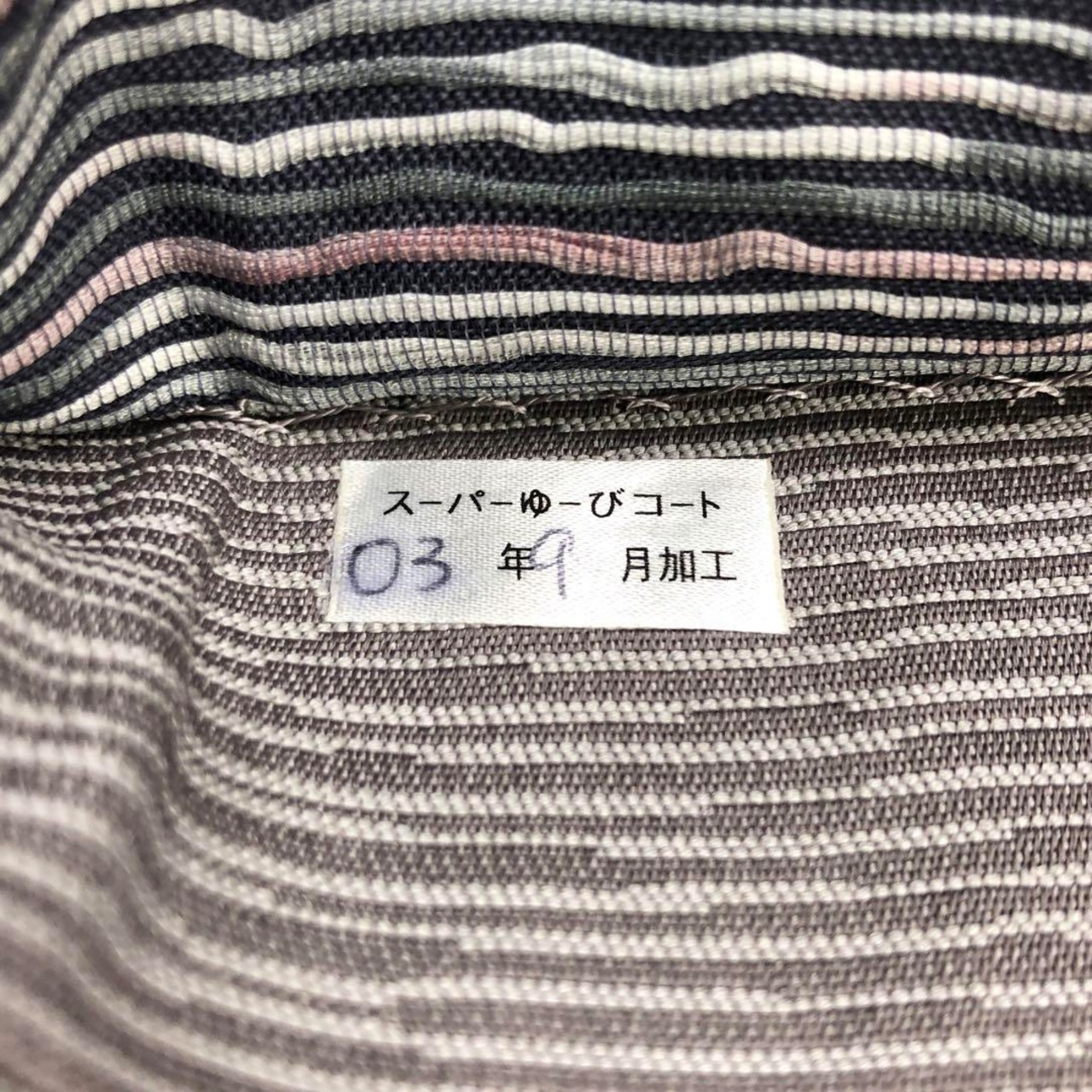 淡い色彩の横縞模様に丸の中に三日月、花模様などがデザインされた上品な織柄デザインの素敵なお品でございます。