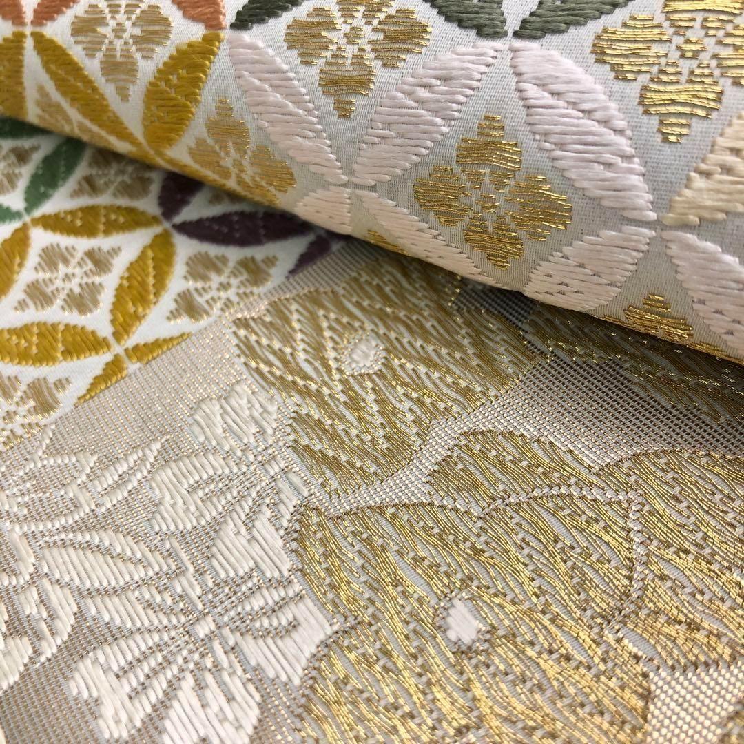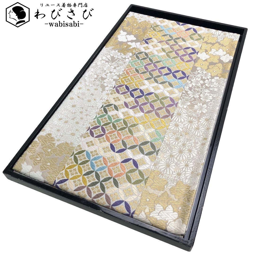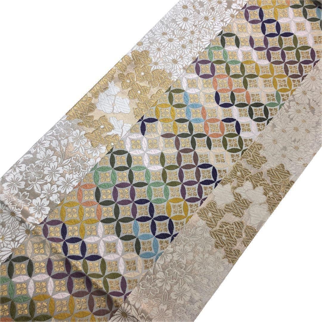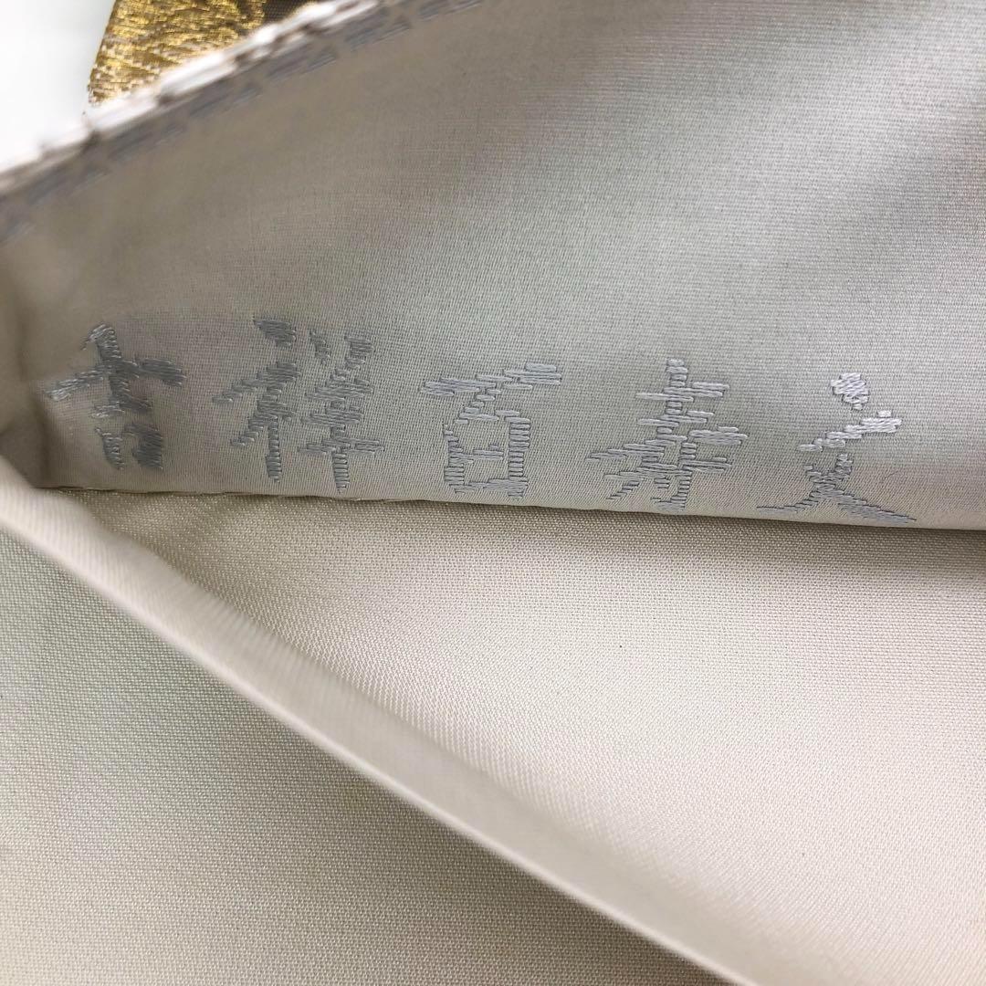 草木唐織、吉祥百寿文と題された縦柄の金糸を使った鮮やかな七宝繋ぎに菊や桜の四季の花模様がデザインされた素敵な柄裄のお品でございます。