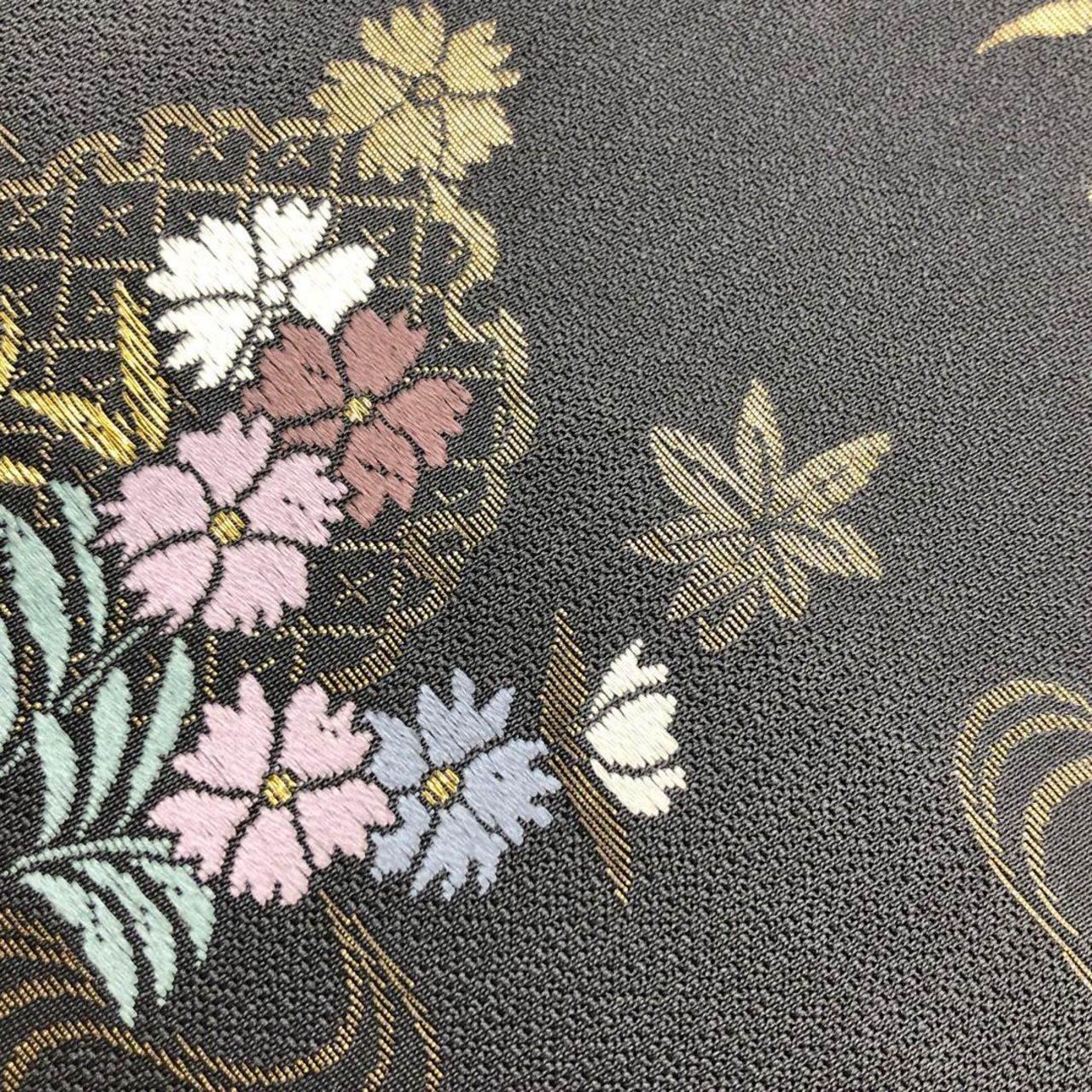 袋帯 上品な四季の花模様 金糸 具墨色 O-3244