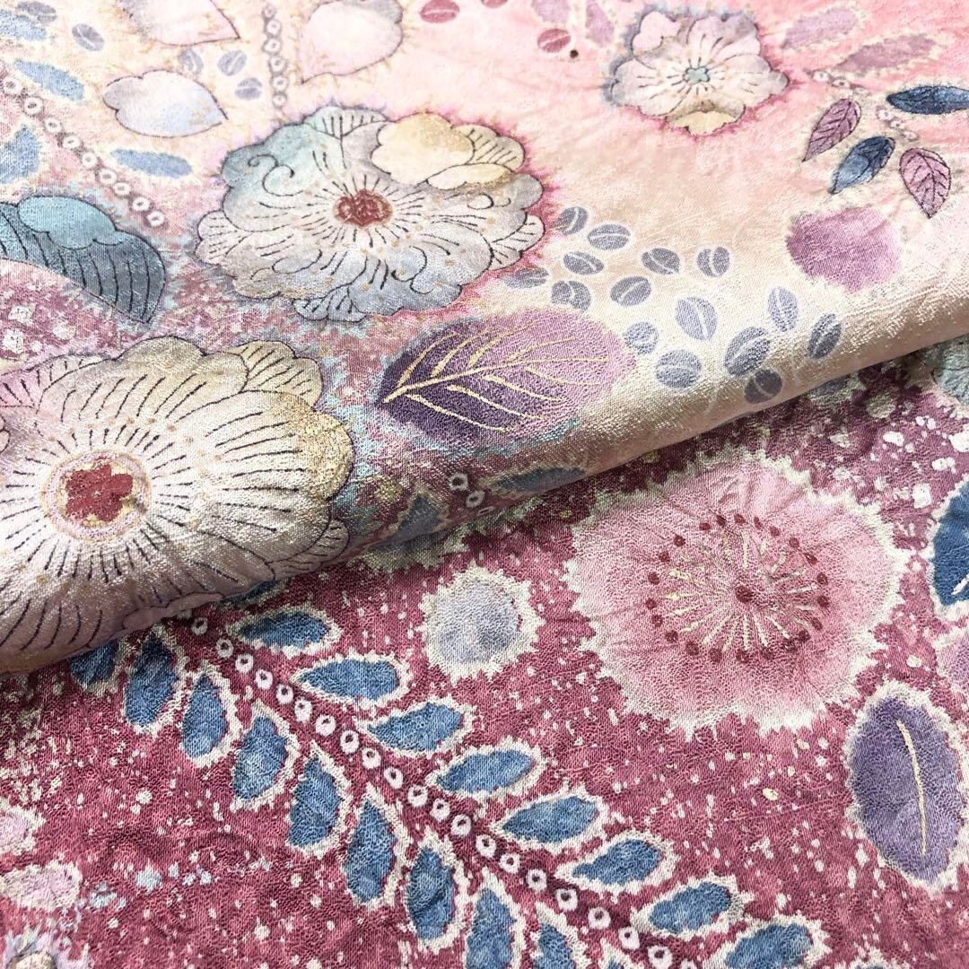 訪問着 美しい辻が花絞り 金彩 叩き染 浅紅色 トールサイズ K-3388