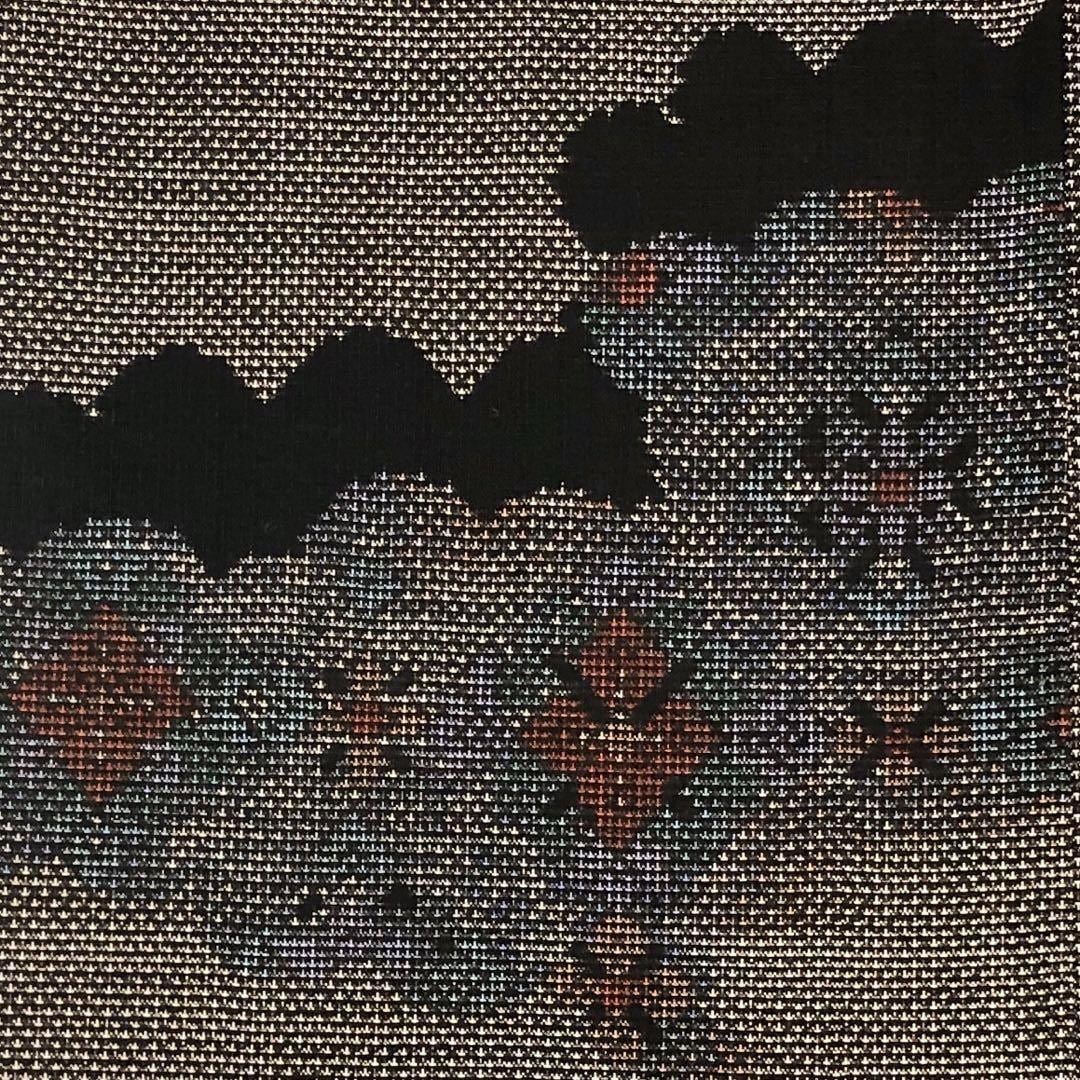 風合いの良い茶泥染に雲の中に華柄模様がデザインされた素敵なお品でございます。
