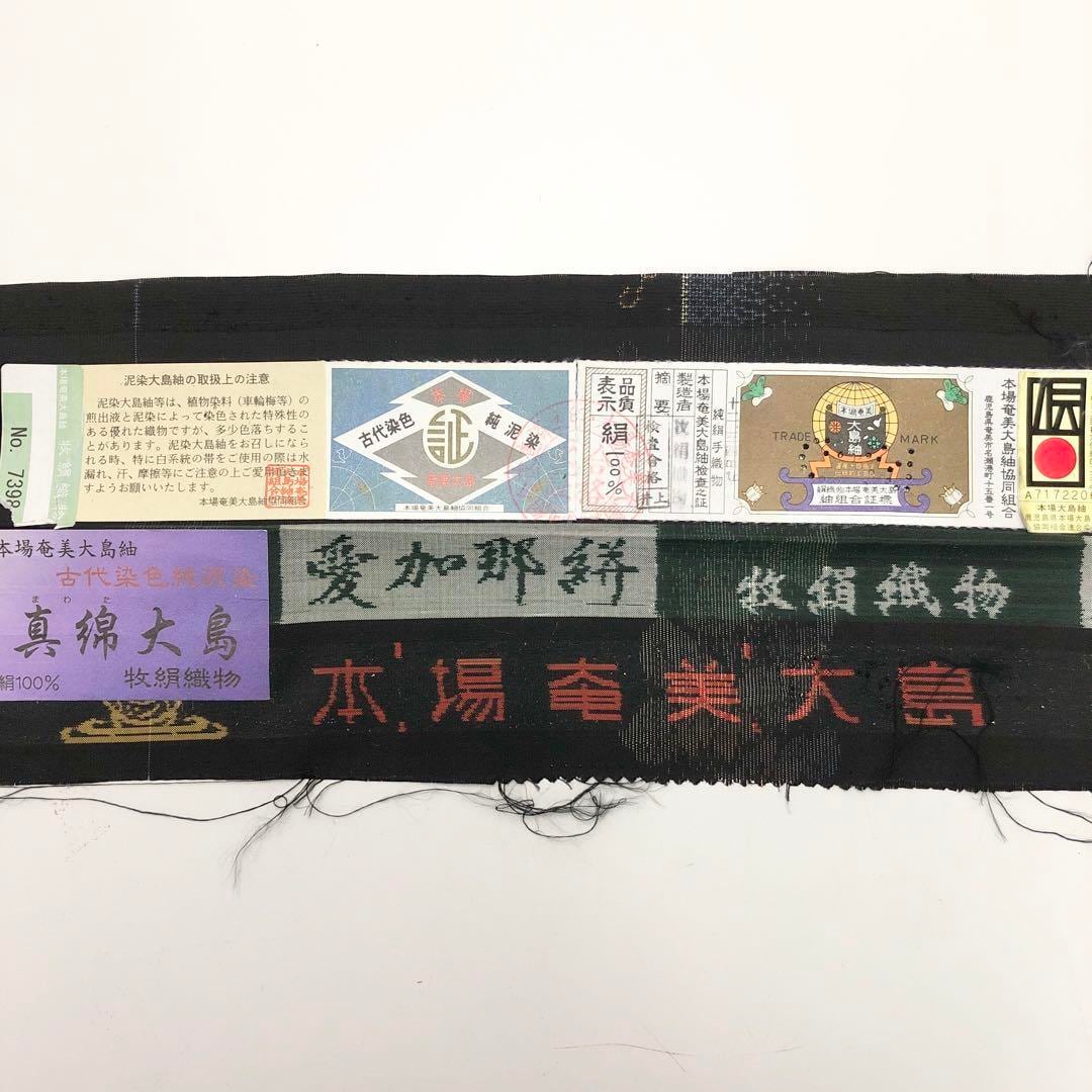 本場奄美大島紬 愛加那絣 真綿大島 美しい縦柄花模様 証紙付 K-3364