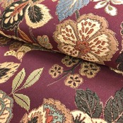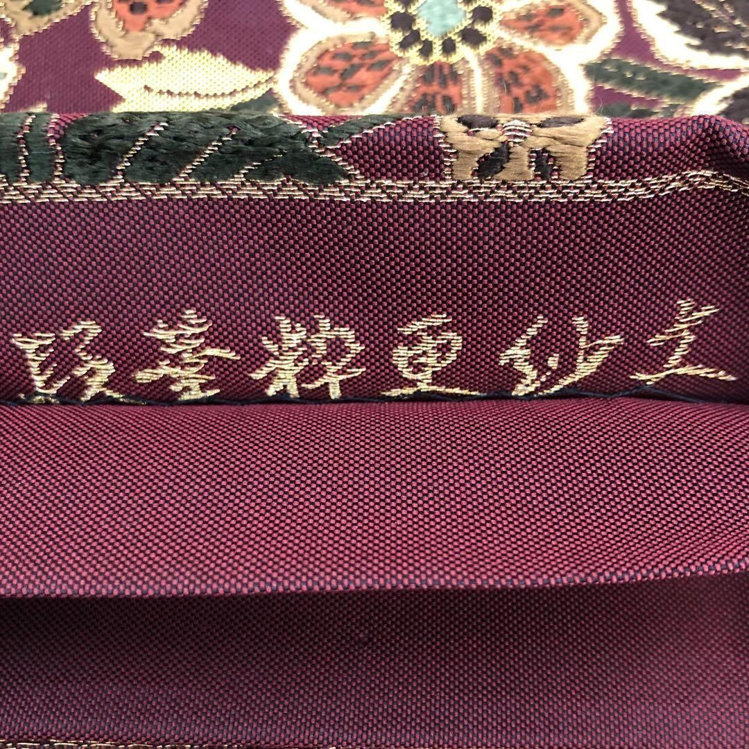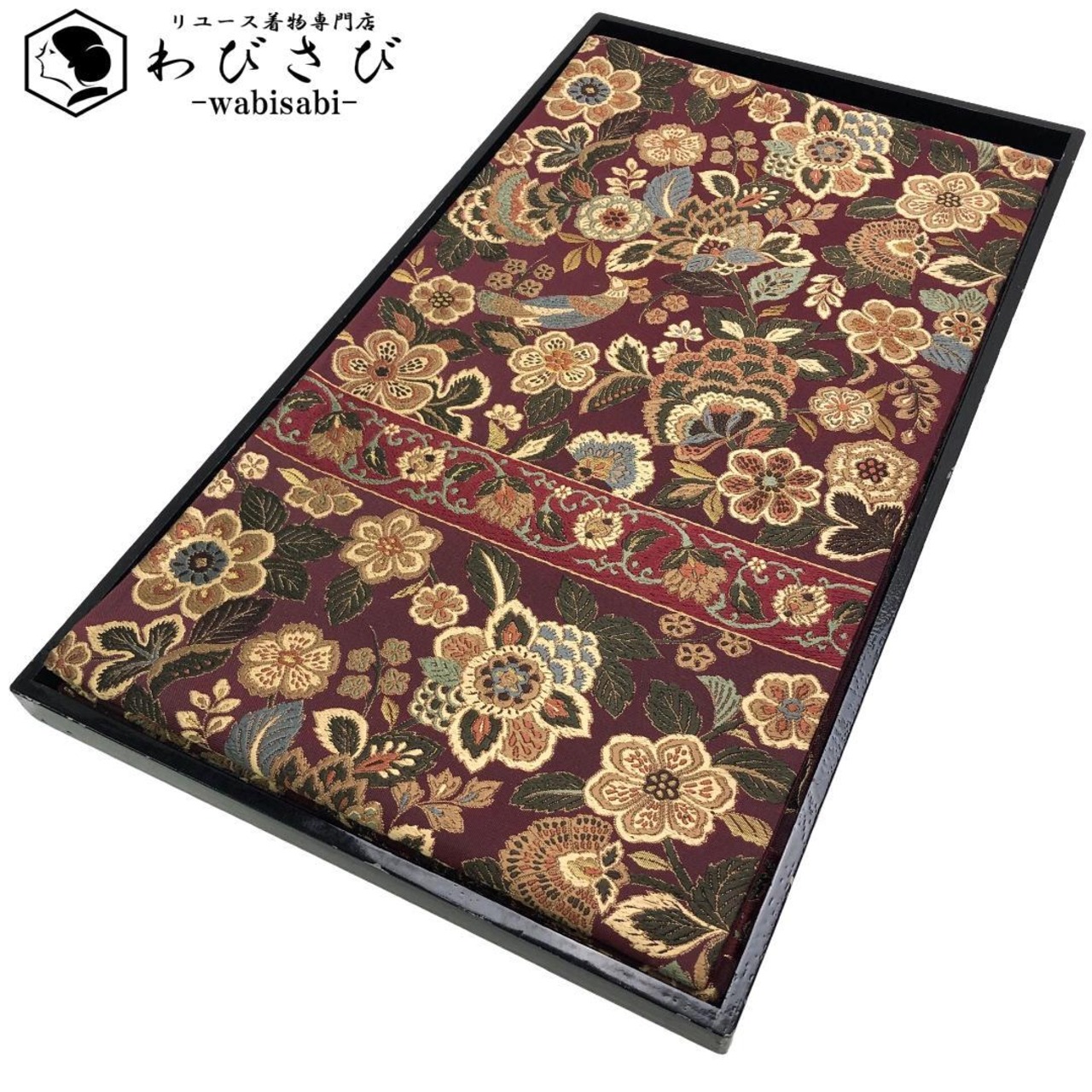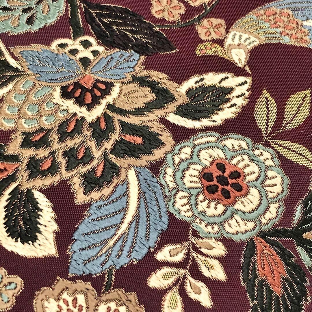 段華粋更紗文と題された赤紫色の高級感のあるお色味に美しい花唐草に鳥柄がデザインされた妖艶な雰囲気の素敵なお品でございます。