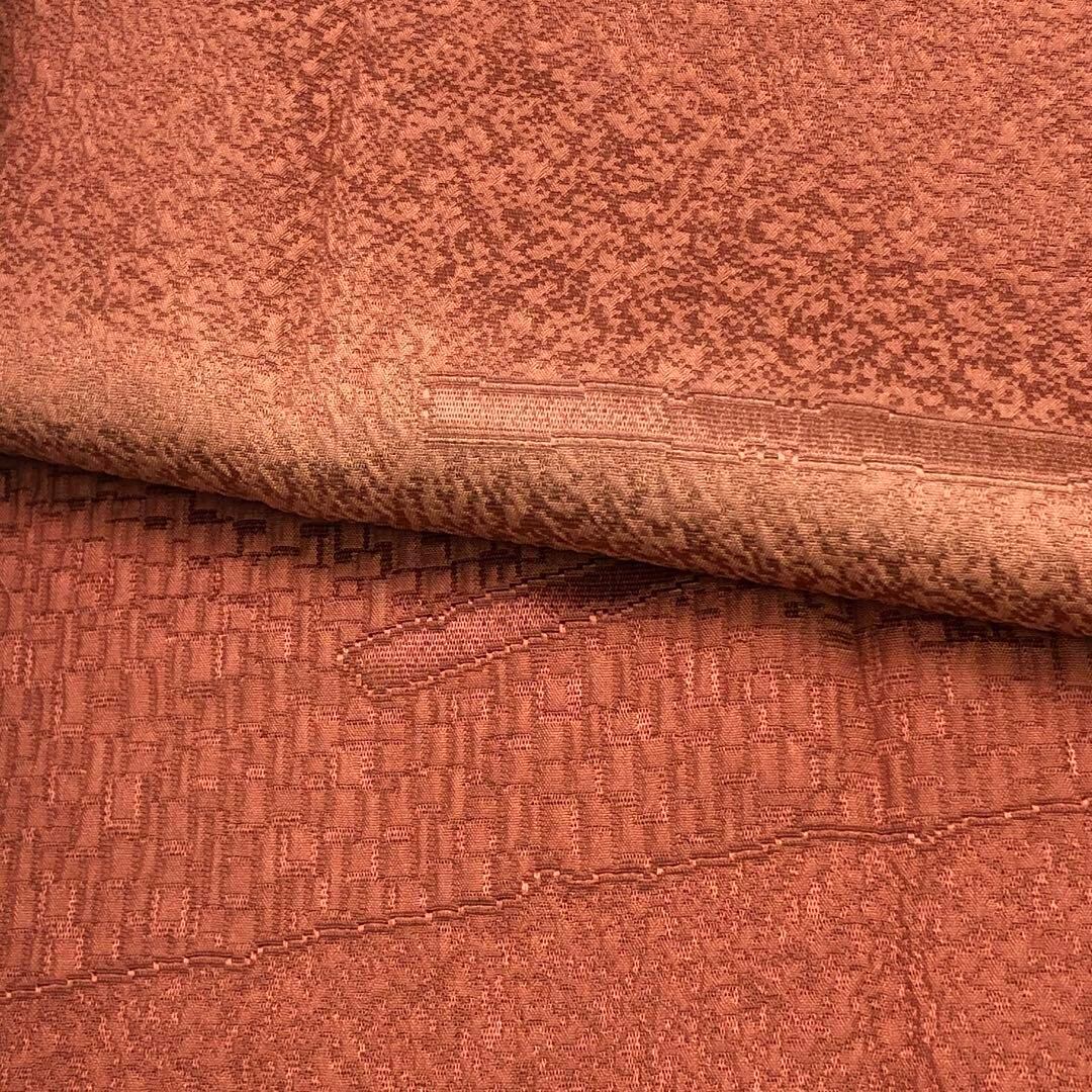 丹後ちりめんに似紅色の美しい染め色に暈し、柄模様がデザインされた素敵なお品でございます。