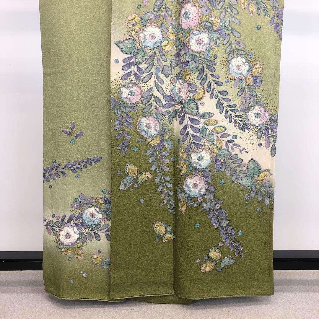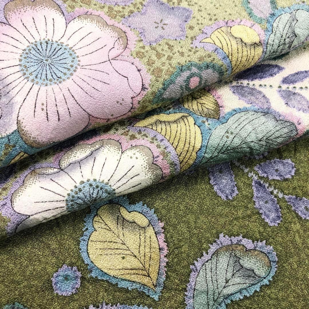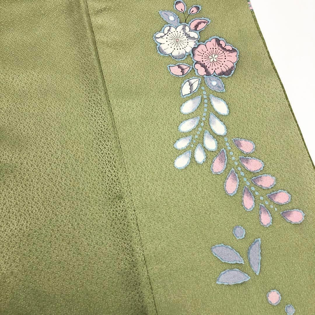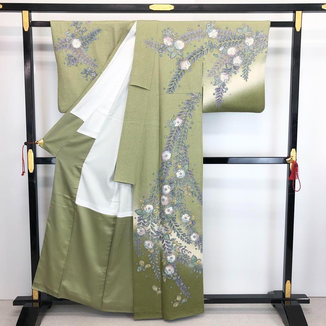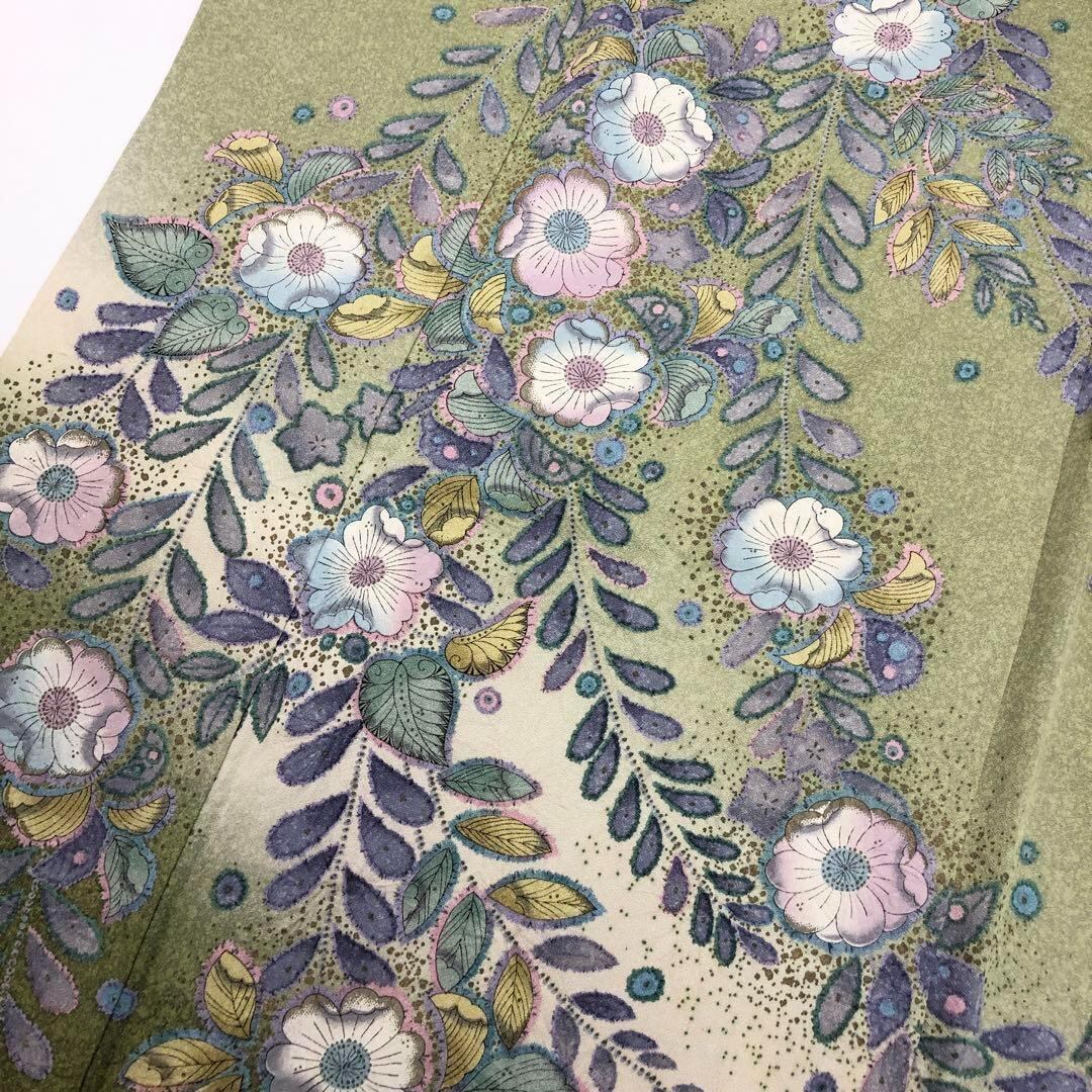 柳茶色のお色味に暈し、叩き染に美しい辻が花絞りの柄裄がデザインされた素敵なお品でございます。