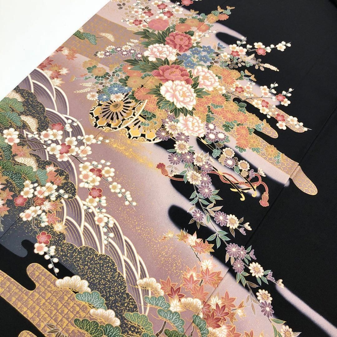黒留袖 金彩友禅 美しい四季の花模様 花車 トールサイズ K-3399
