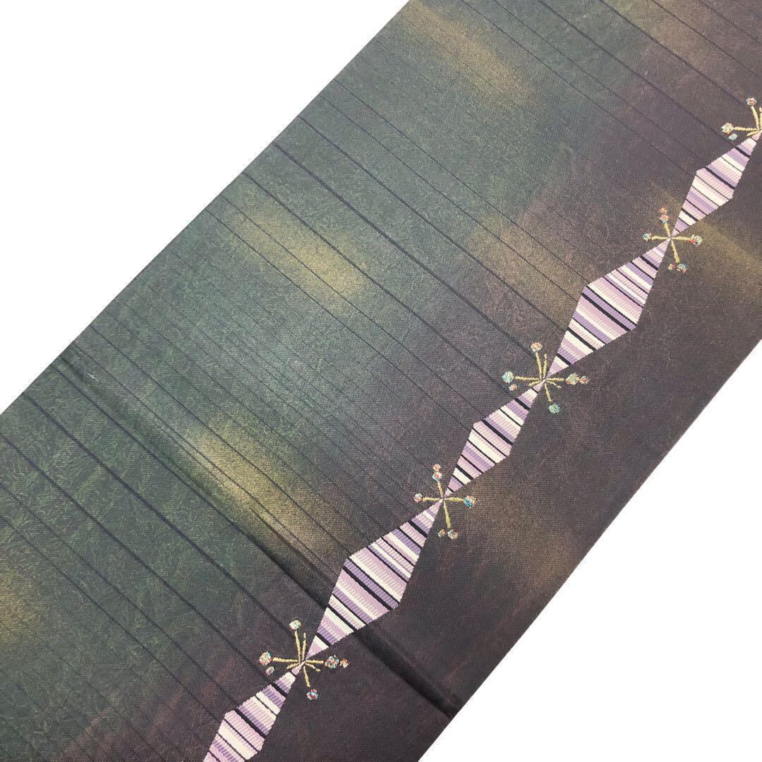 落ち着きのあるお色味に暈し、横縞模様に縦柄のモダンな柄裄がデザインされた素敵な柄裄のお品でございます。