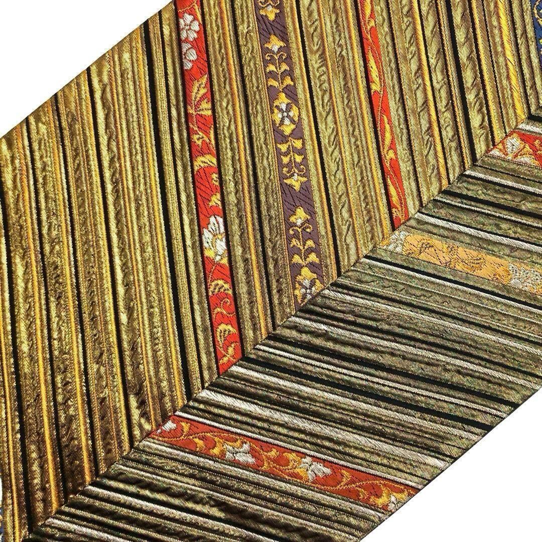 金銀色ベースの斜め縞模様、オーロラ箔の煌びやかな光沢感、花唐草がさり気なくデザインされた素敵なお品でございます。